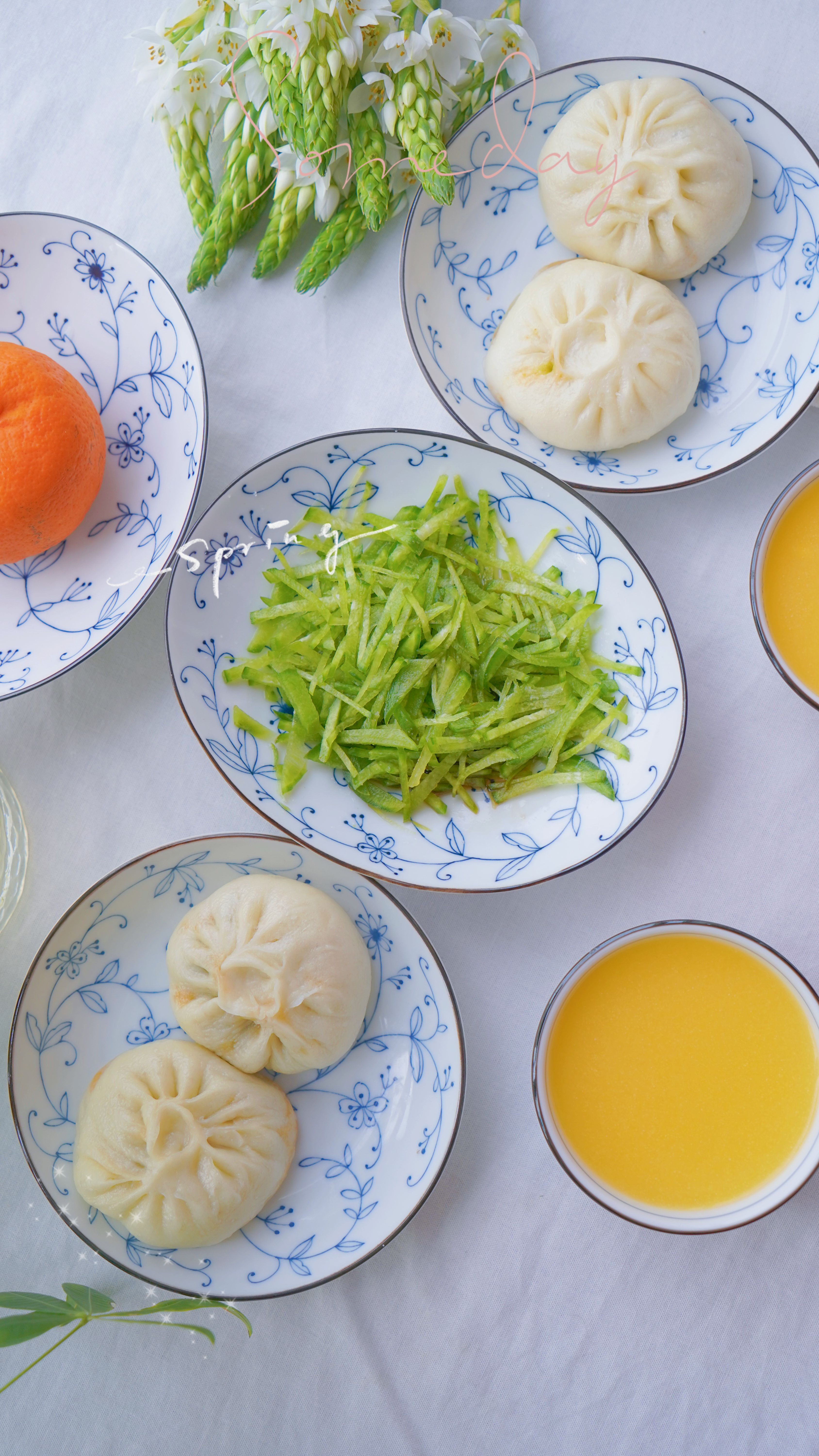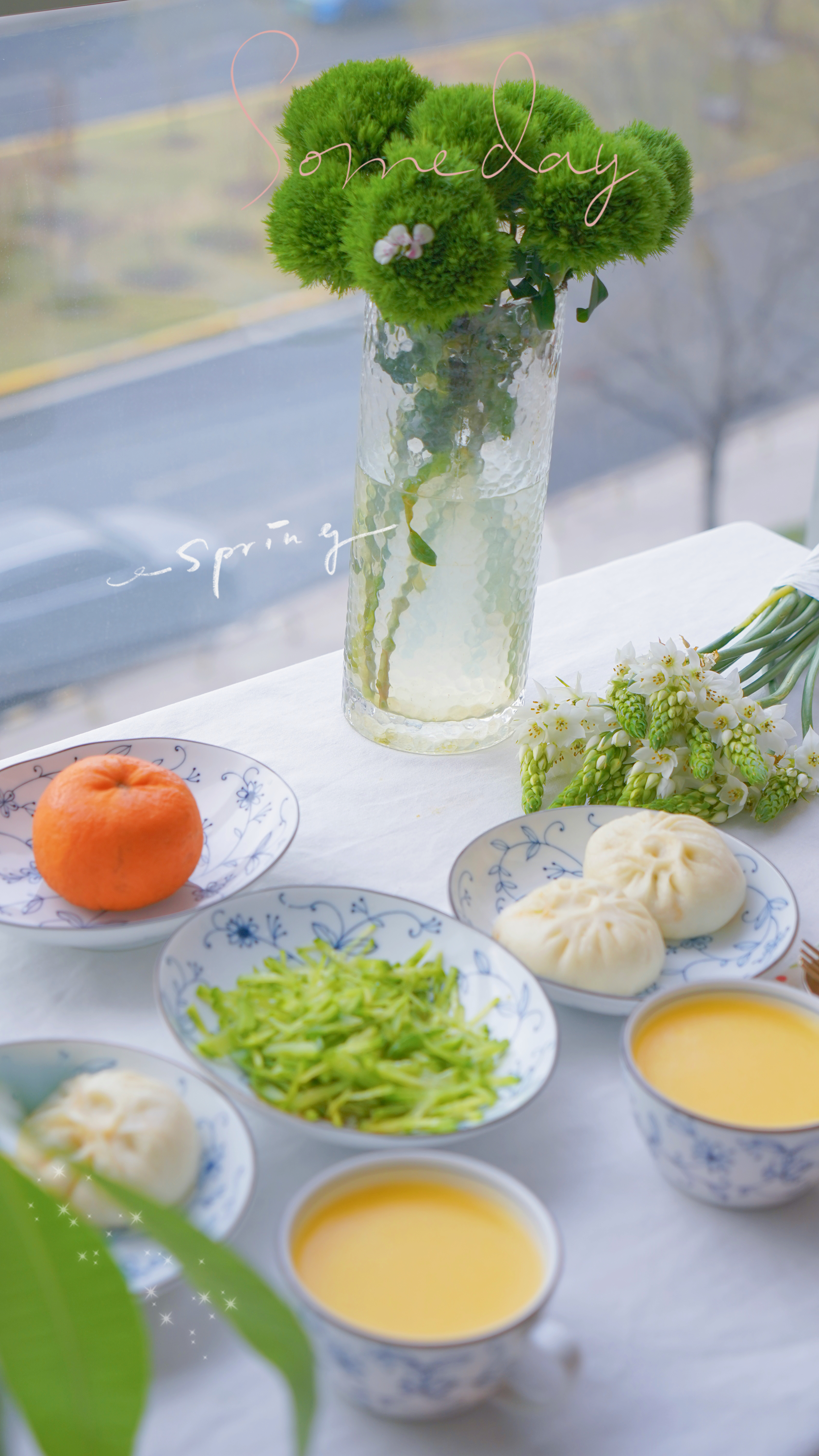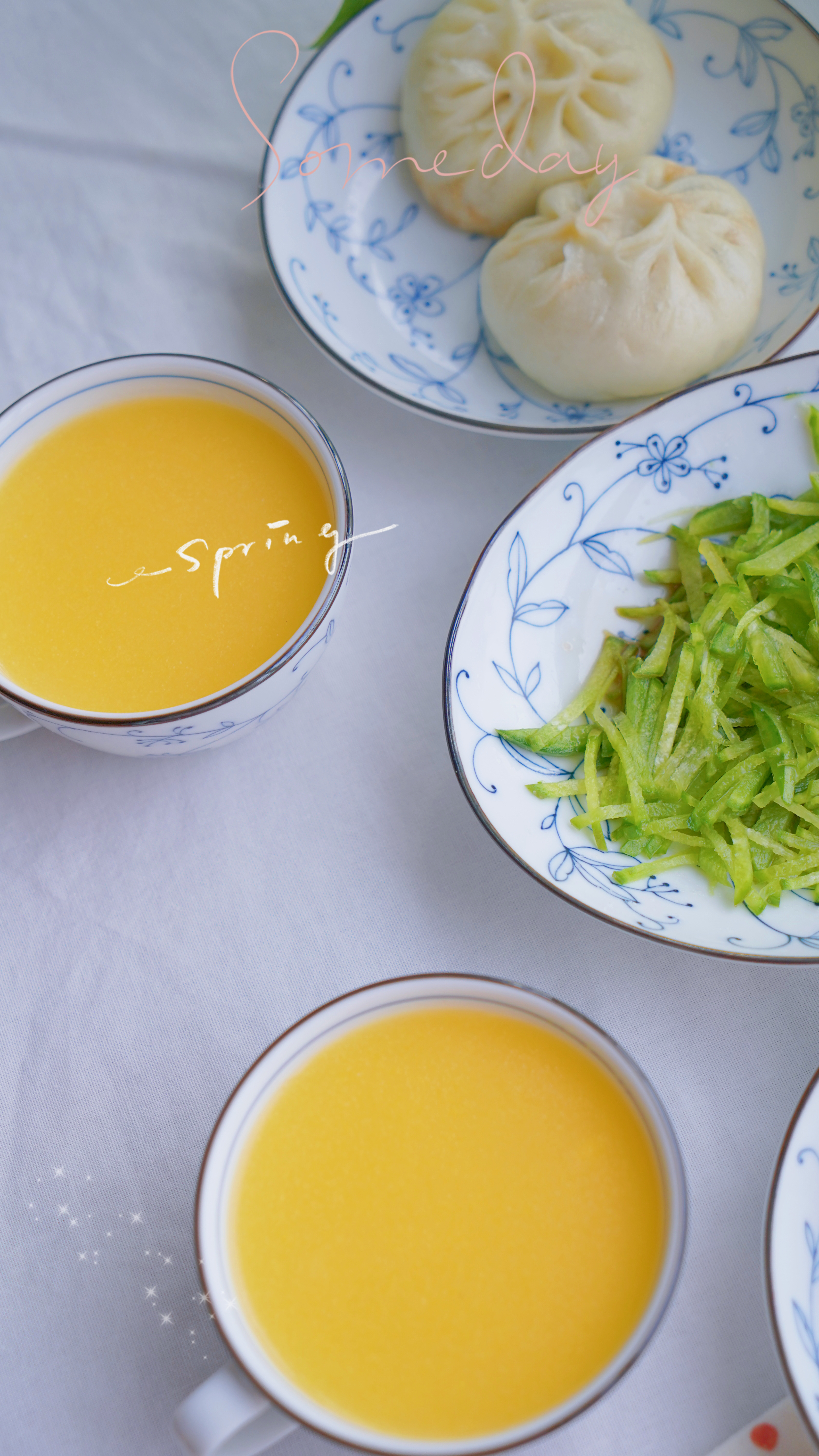 暄软的肉包吸饱了韭菜的香,脆爽的萝卜丝中和了油腻,两杯温热的玉米汁,是春天独有的甜。