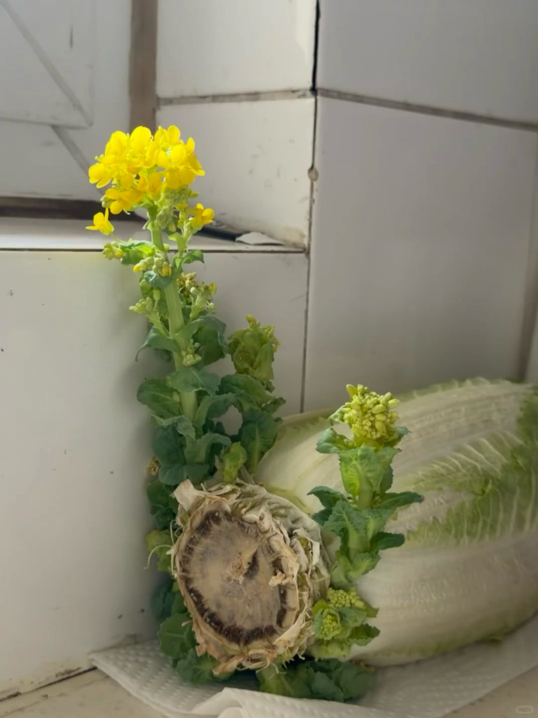 放了两周的白菜开花了!还挺好看的!果然是春天啊,是万物都想开花的季节~放了两周的白菜开花了