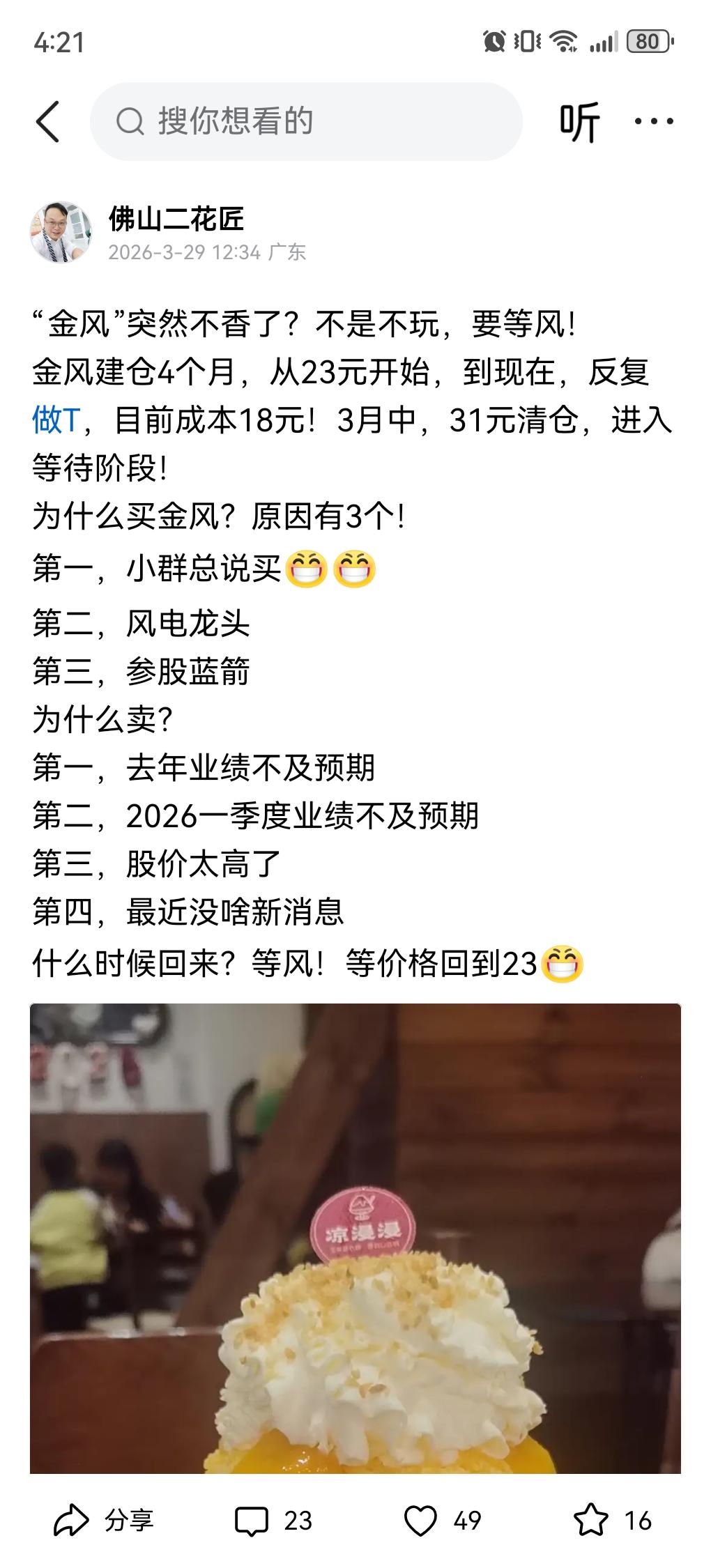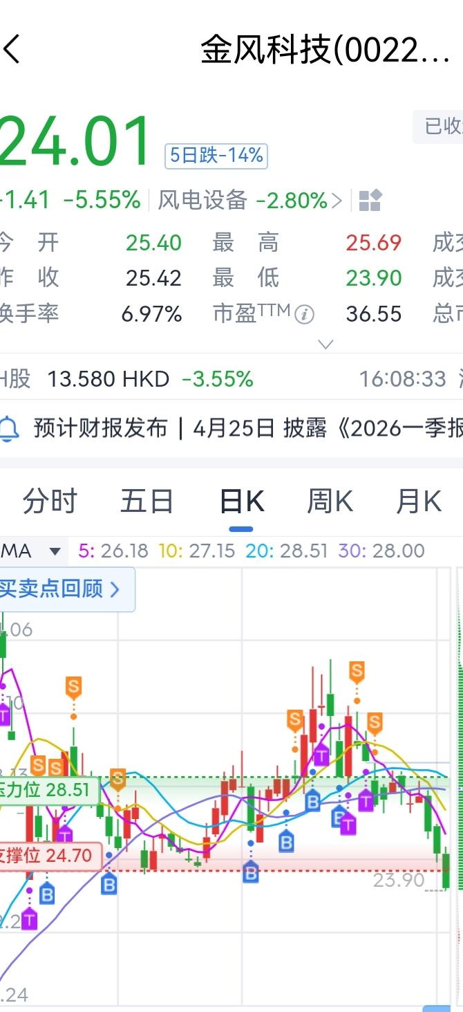 说了“金风”到23!没骗大家吧? 我31就清了,安静看戏!之前的船舶也是这样!这次也是如此! 不过,也别太紧张!19-23是安全区域!今天跌,主要是4个原因导致! 1、蓝箭Ipo出了点问题,能不能第一个航天上市不好说! 2、整个市场都在跌 3、涨多了就要跌! 4、业绩不达预期!赚了27亿?问题机构预测是32!不及预期!! 跌多少?30%-38%!从35开始算! 35*65%=22.75元!?感觉差不多到了[呲牙]