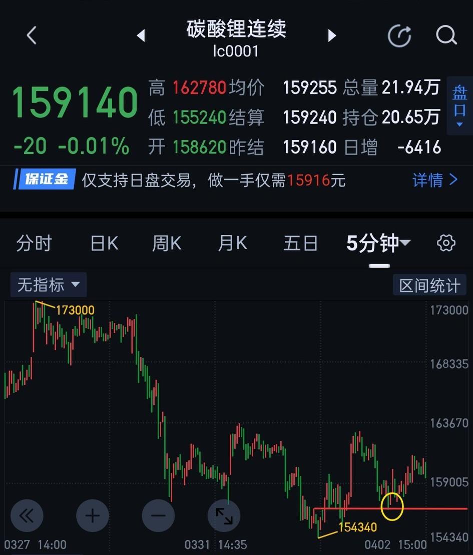 碳酸锂,短期走势行至十字路口。 碳酸锂今天站稳昨天的关键点位154340,