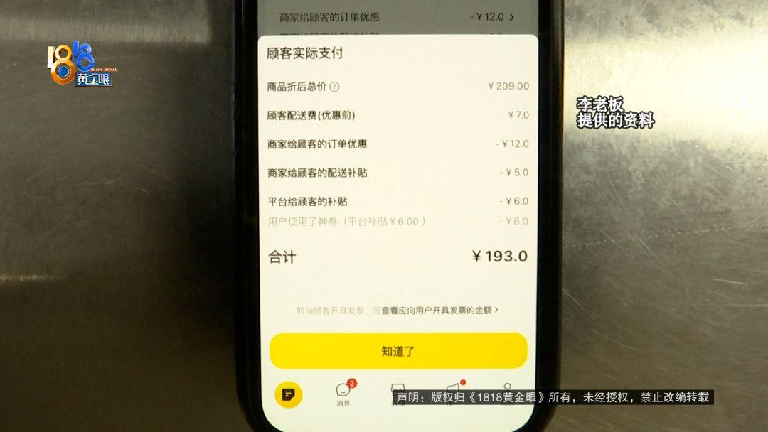 “太憋屈了!”杭州一家生腌海鲜馆的老板,遇上一单193元的外卖,顾客吃完2天后反