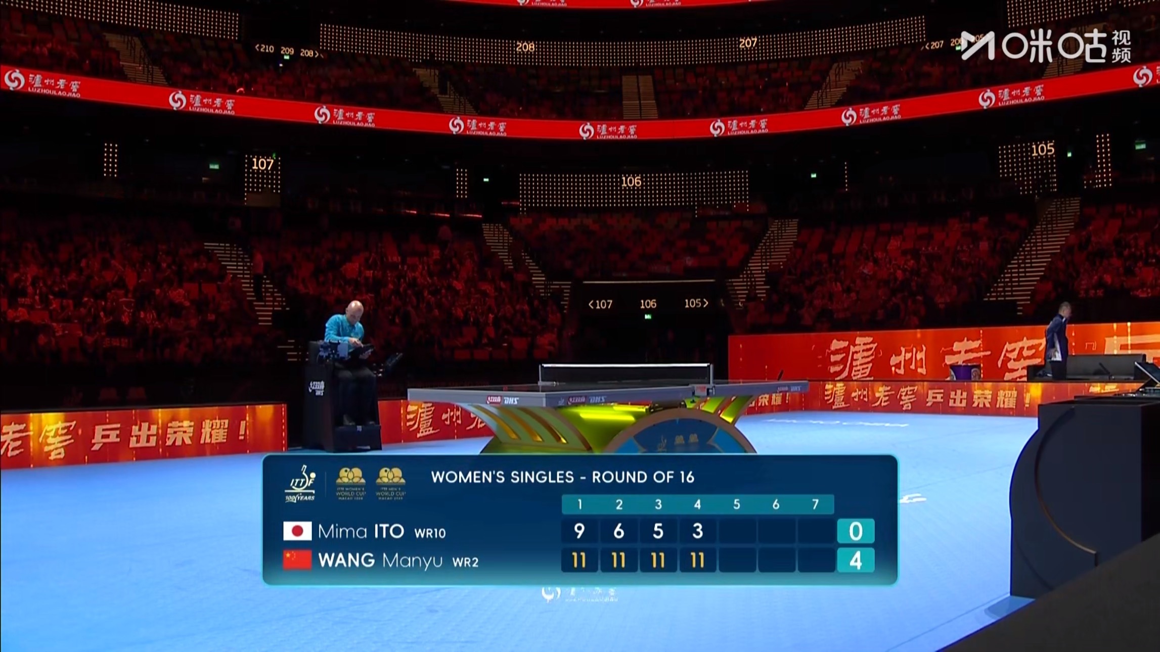 王曼昱4比0伊藤美诚 乒乓球 (11-9,11-6,11-5,11-3)晋级澳门