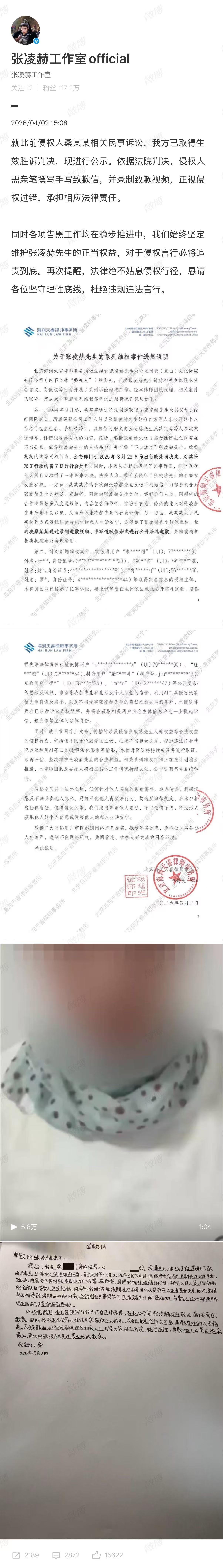 张凌赫告私生胜诉私生手写道歉信向张凌赫道歉张凌赫告私生大获全胜!支持内娱所有艺人