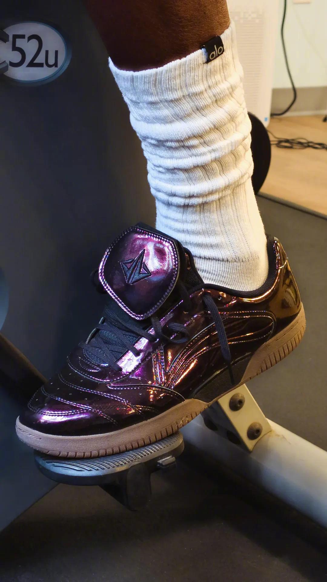 巴特勒康复训练中上脚All Around「鎏铜」PE配色,带有棕色和紫色的渐变效果。
