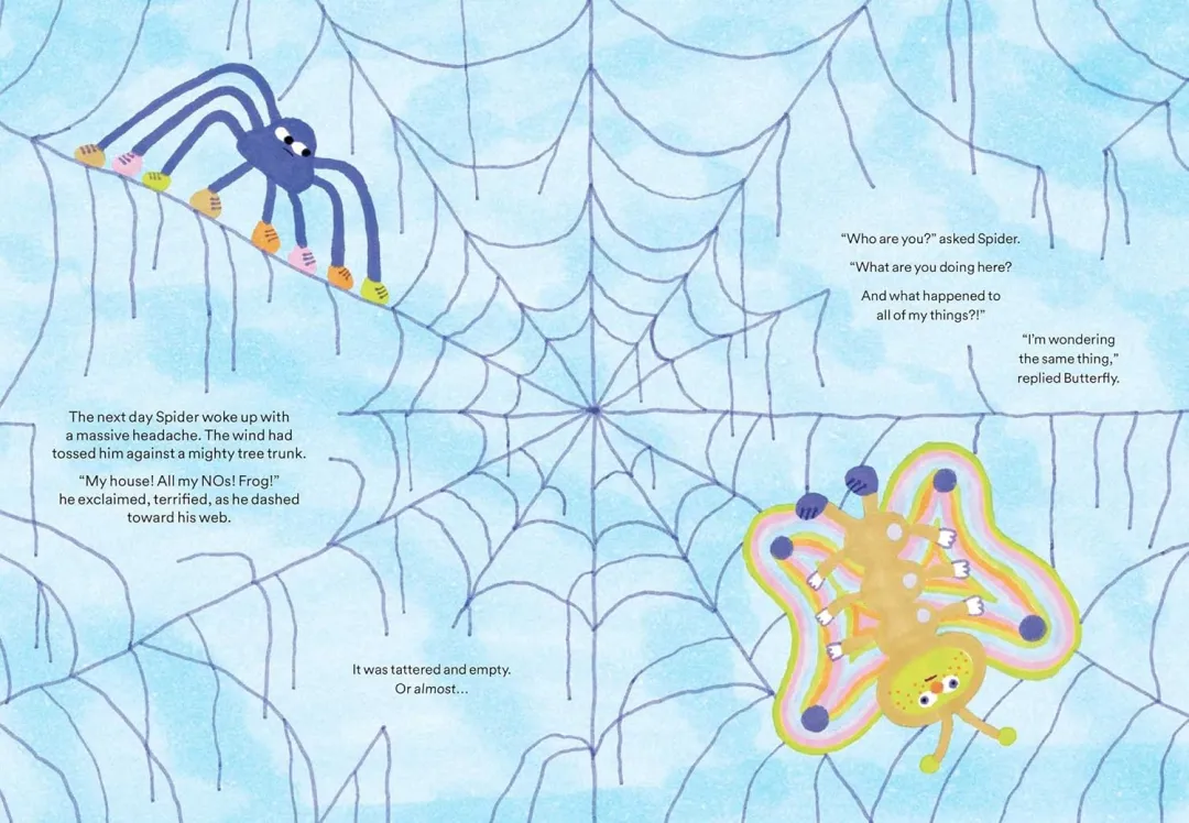 蜘蛛看着自己空荡荡的家和散落各处的“不”,又看向蝴蝶说:“好的。”