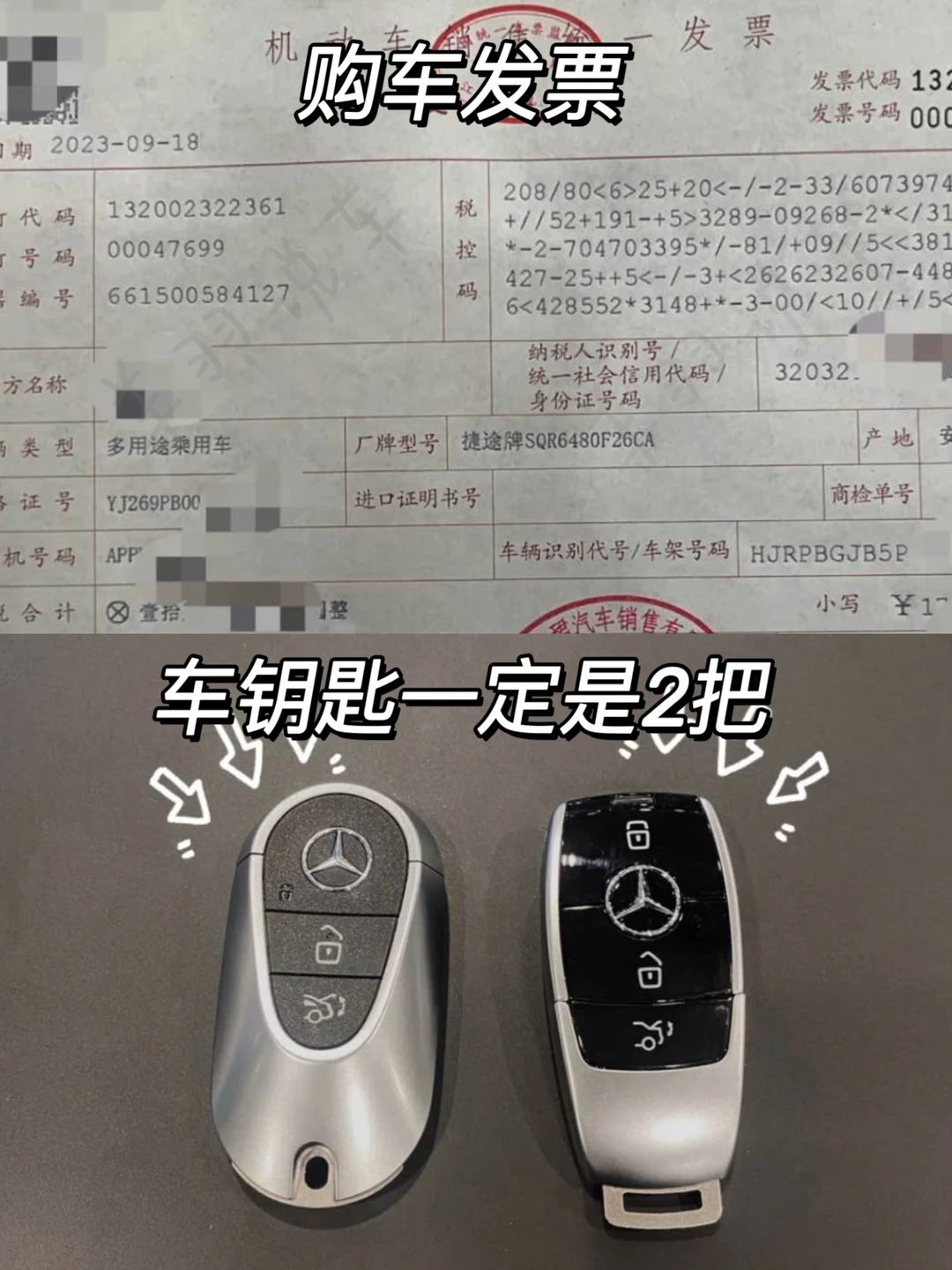 2⃣️车钥匙2把,后续配一把要好几千块