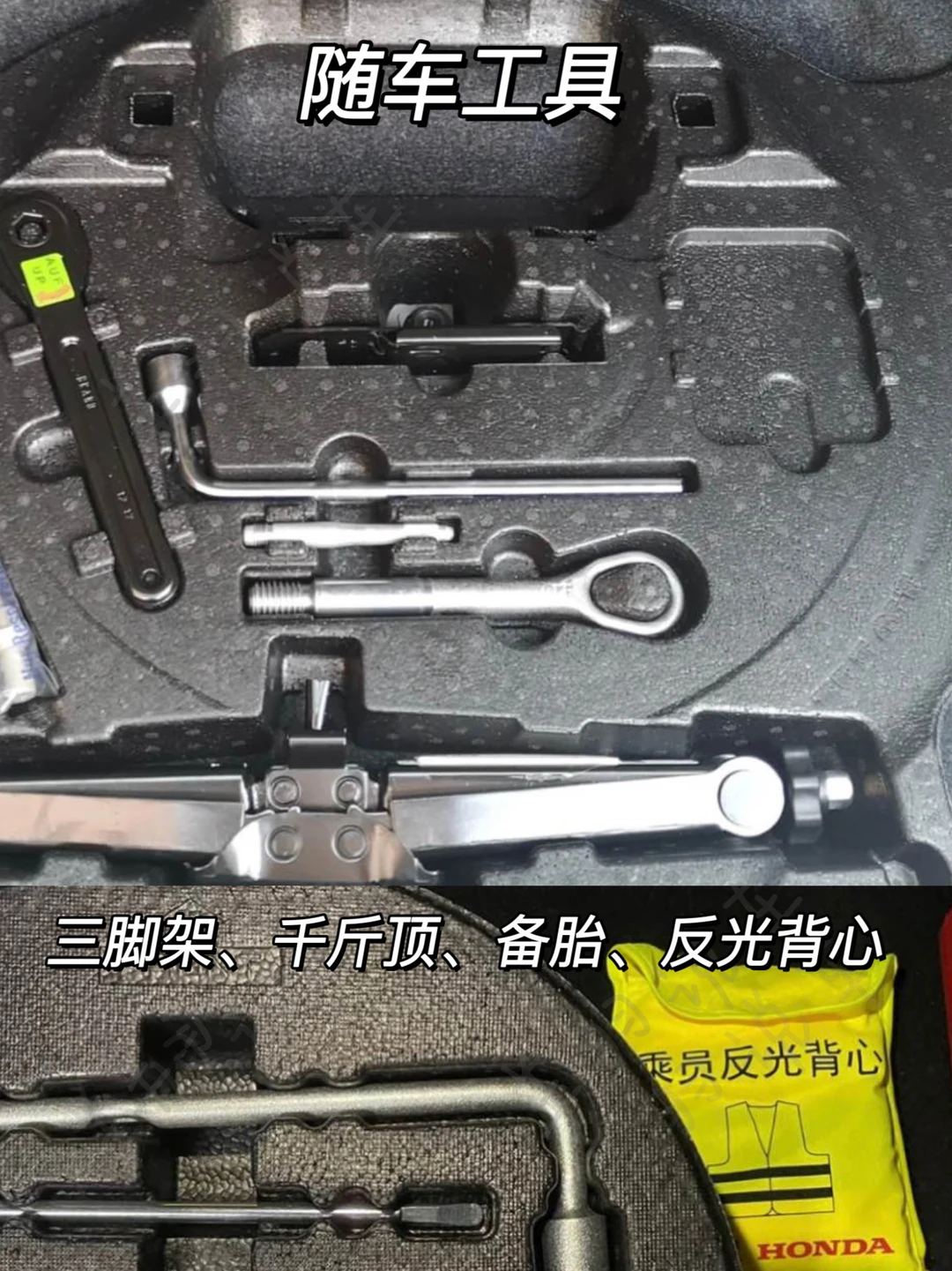 1⃣️1⃣️随车物品,千斤顶、备胎、工具箱、反光背心、三角警示牌等等,逐个清点