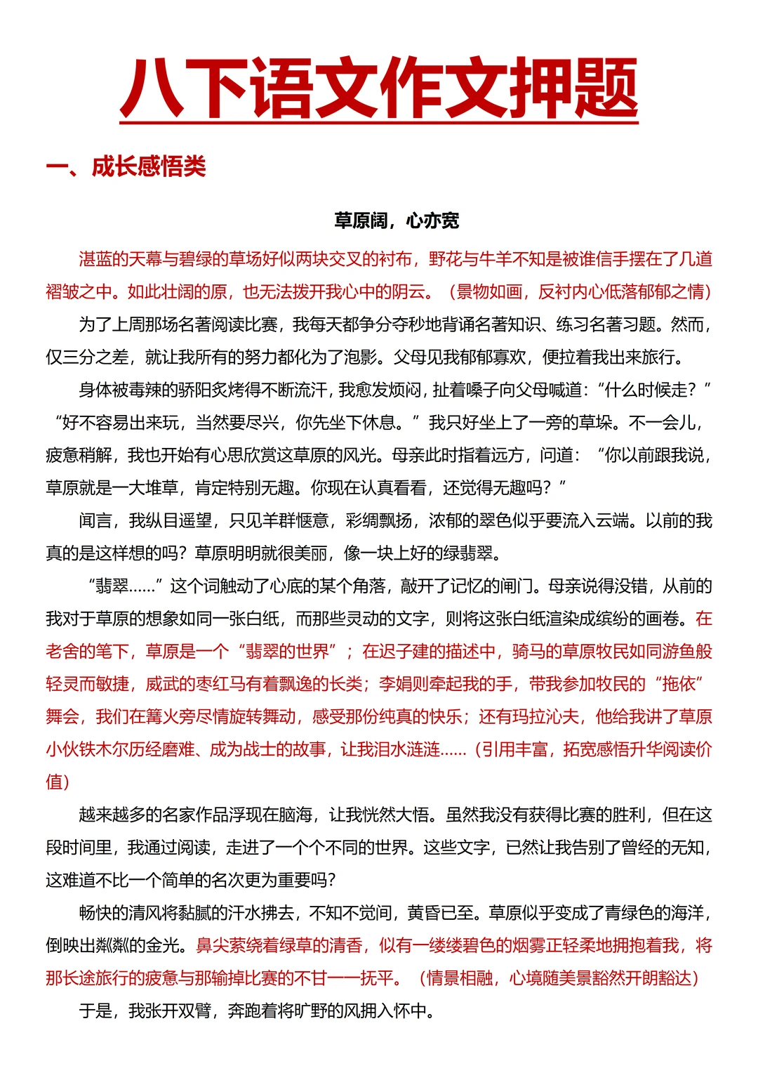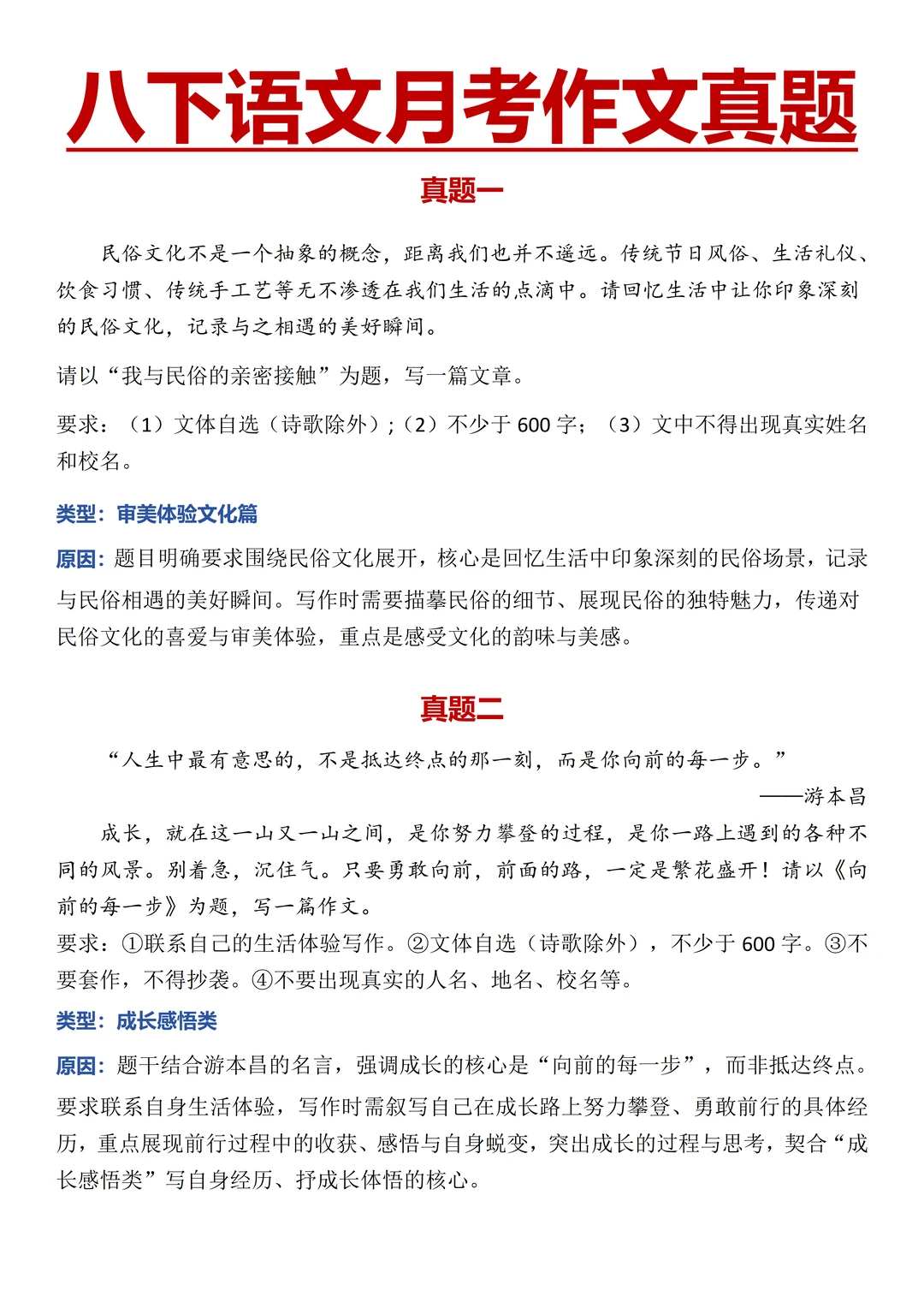 积累成长感悟类、审美文化体验篇素材;参考高分范文拆解思路,模仿写作手法和结构,提前准备好自己的一类文;家长可以带孩子一起做 5 道经典作文真题审题训练,列提纲对照检查思路是否有偏;