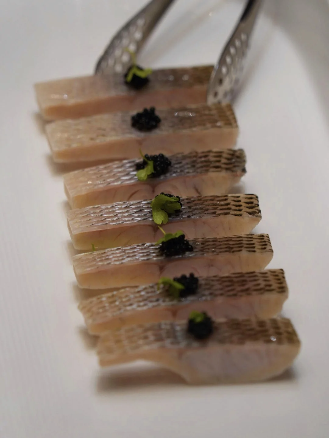 🎻手剥河虾仁塔塔:鲜弹河虾仁位上精致摆盘,清爽脆嫩,一口尝尽江南鲜甜。