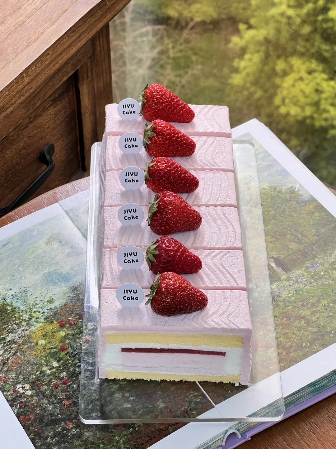 条形切块蛋糕造型*草莓酸奶慕斯层层叠加