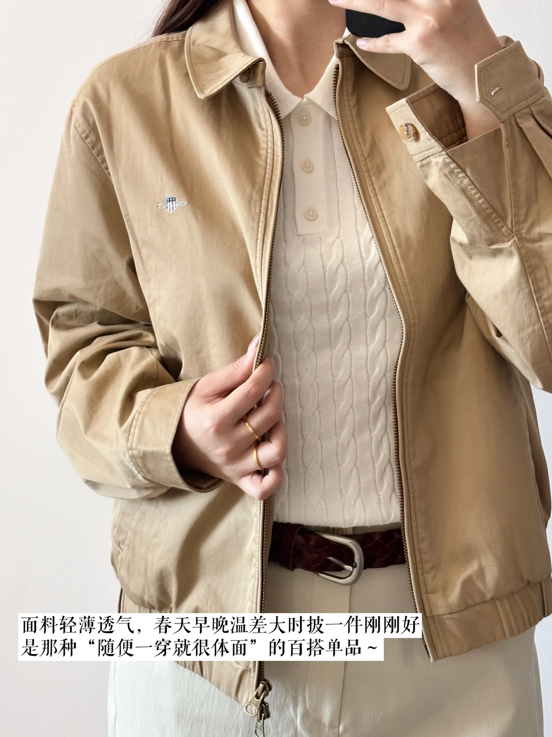 这件卡其色薄夹克,是我通勤常穿的