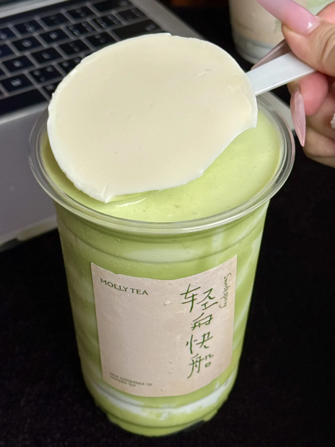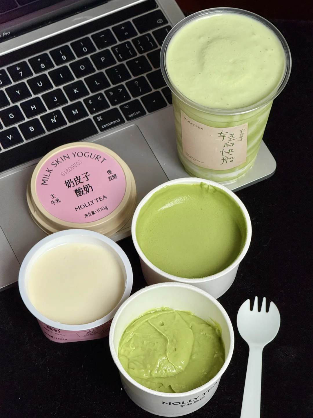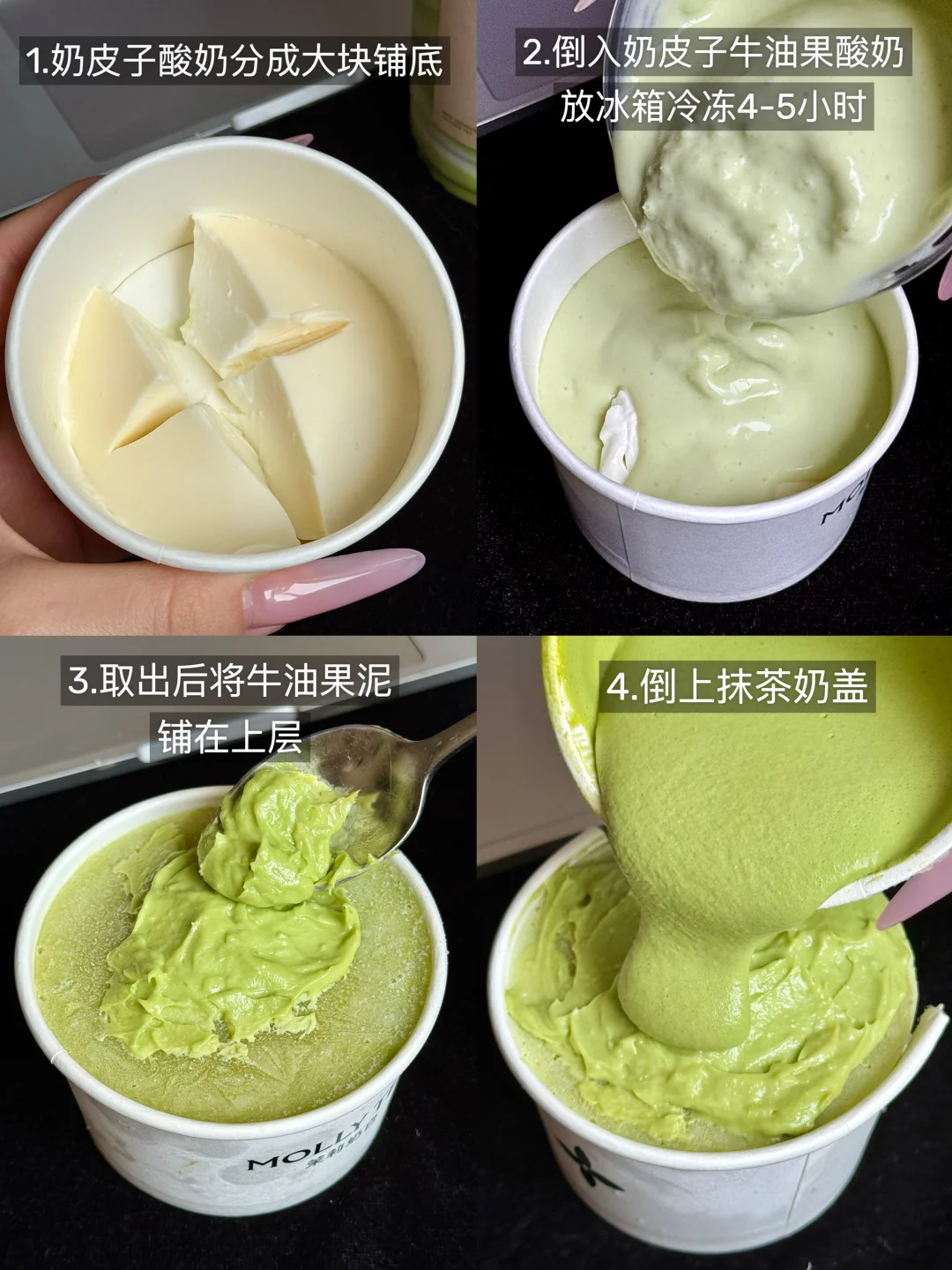 谁懂这一口有多惊艳!!!! 茉莉奶白牛油果新品爆改奶皮子牛油果冰淇淋🍦 奶呼呼的,还有清新的牛油果味🥑好春天啊!! - 1️⃣点一杯奶皮子牛油果酸奶,点小料碗分装:抹茶芝士、牛油果泥、奶皮子 2️⃣将奶皮子分成大块铺在小料碗底部 3️⃣倒入奶皮子牛油果酸奶,震一下气泡 3️⃣冷冻取出后稍微静置几分钟,将牛油果泥铺在上面,倒上抹茶芝士就ok啦 好好吃!冻啃奶香牛油果冰淇淋的感觉!加上浓郁的抹茶奶盖,别有一番风味呢~ 也可以直接喝奶皮子牛油果酸奶!!相当好喝!贼清爽!