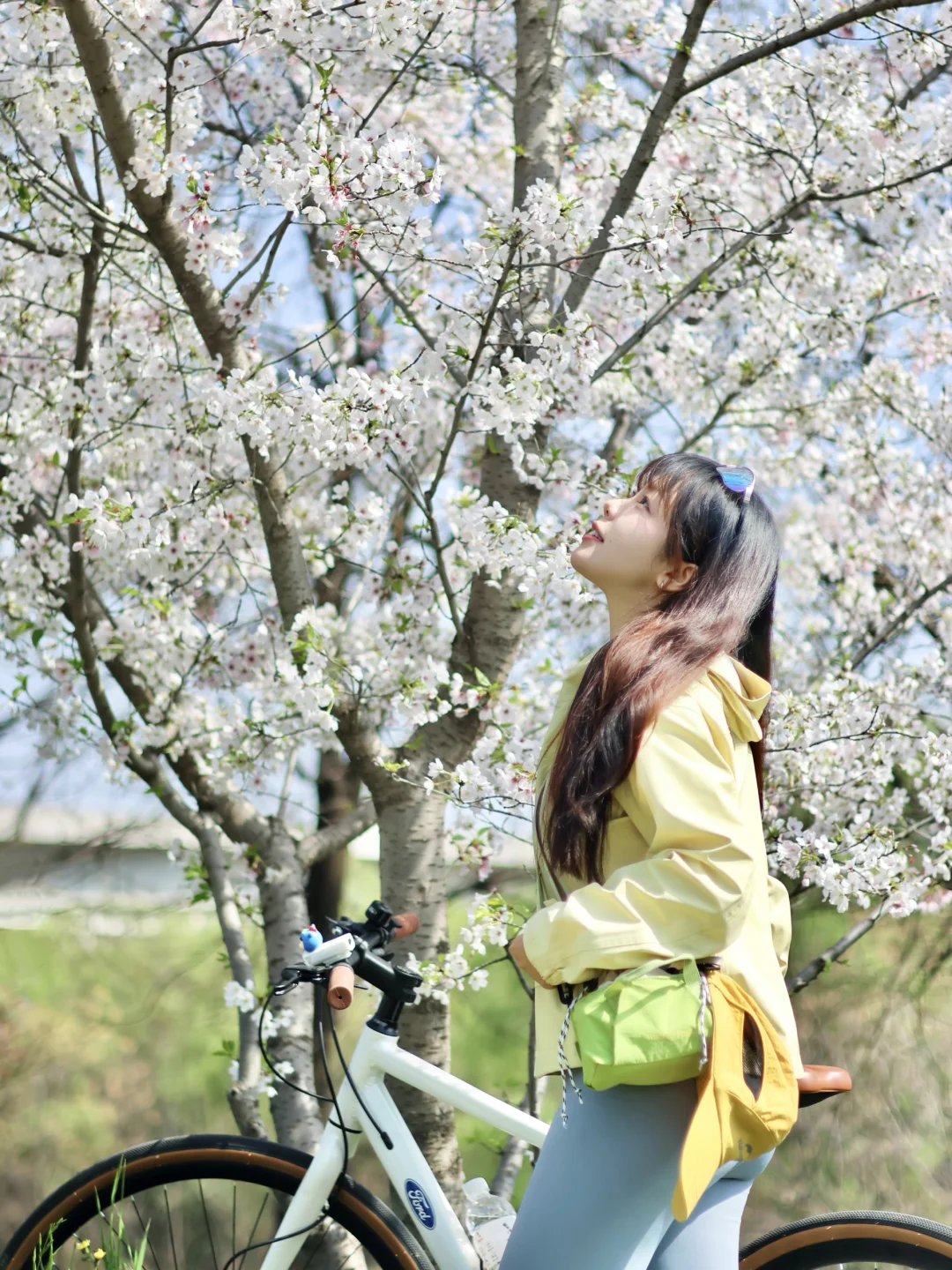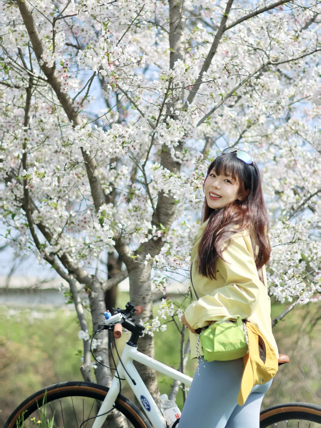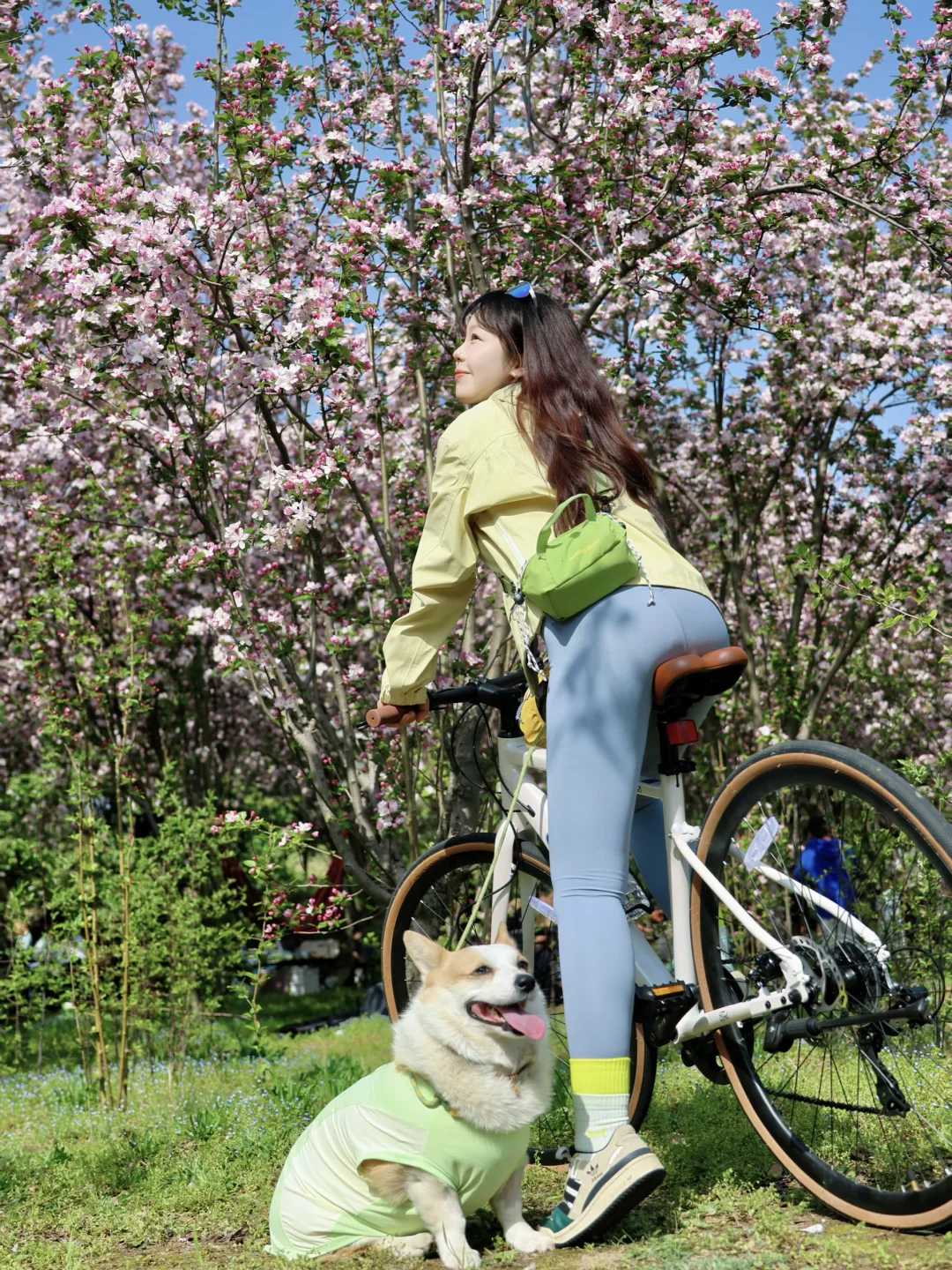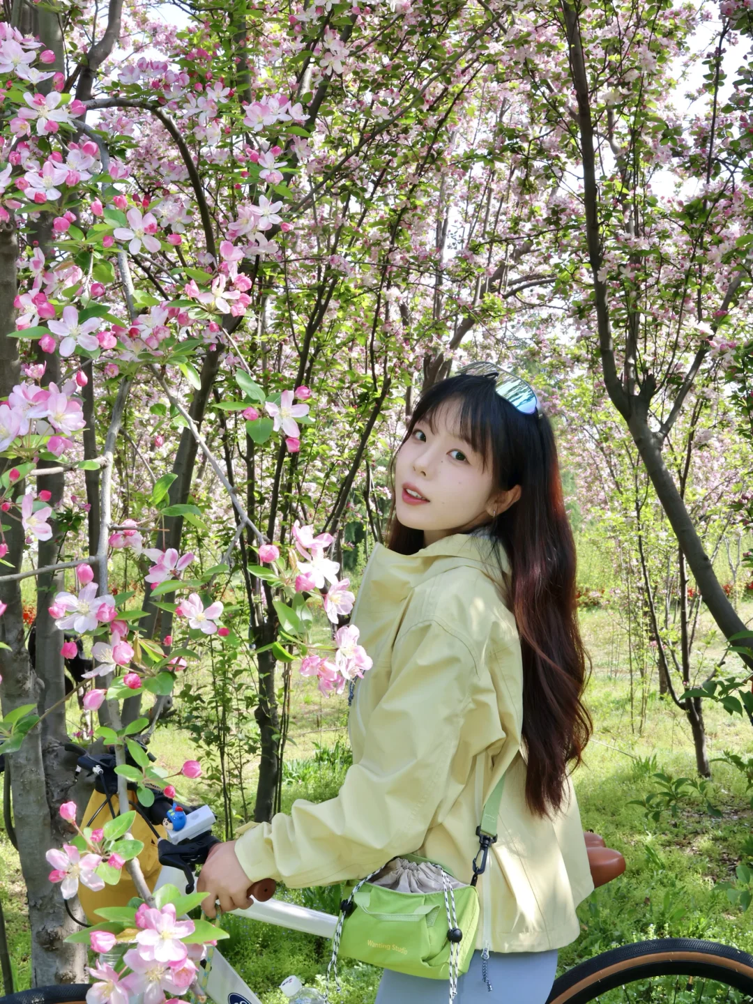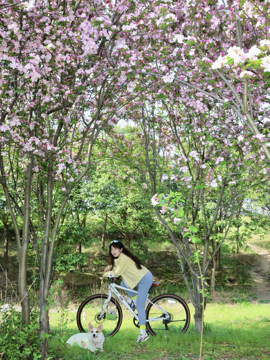 西安河堤路海棠花开爆啦🌸春天好适合骑车!