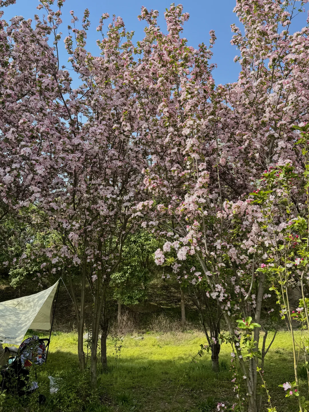 3.28周末实拍 骑车路过河堤路兰池大道附近 看到一大片西府海棠花林 花朵很低,矮矮的,很好拍 可以免费遛娃👧遛狗🐶露营🏕️拍照📷赏花 但是不可以明火 记得带走垃圾,不要乱折花枝哦 📍具体位置:导航「滨渭路东段」,花海离这个目的地约1-2公里左右,路过时在路边就能看到