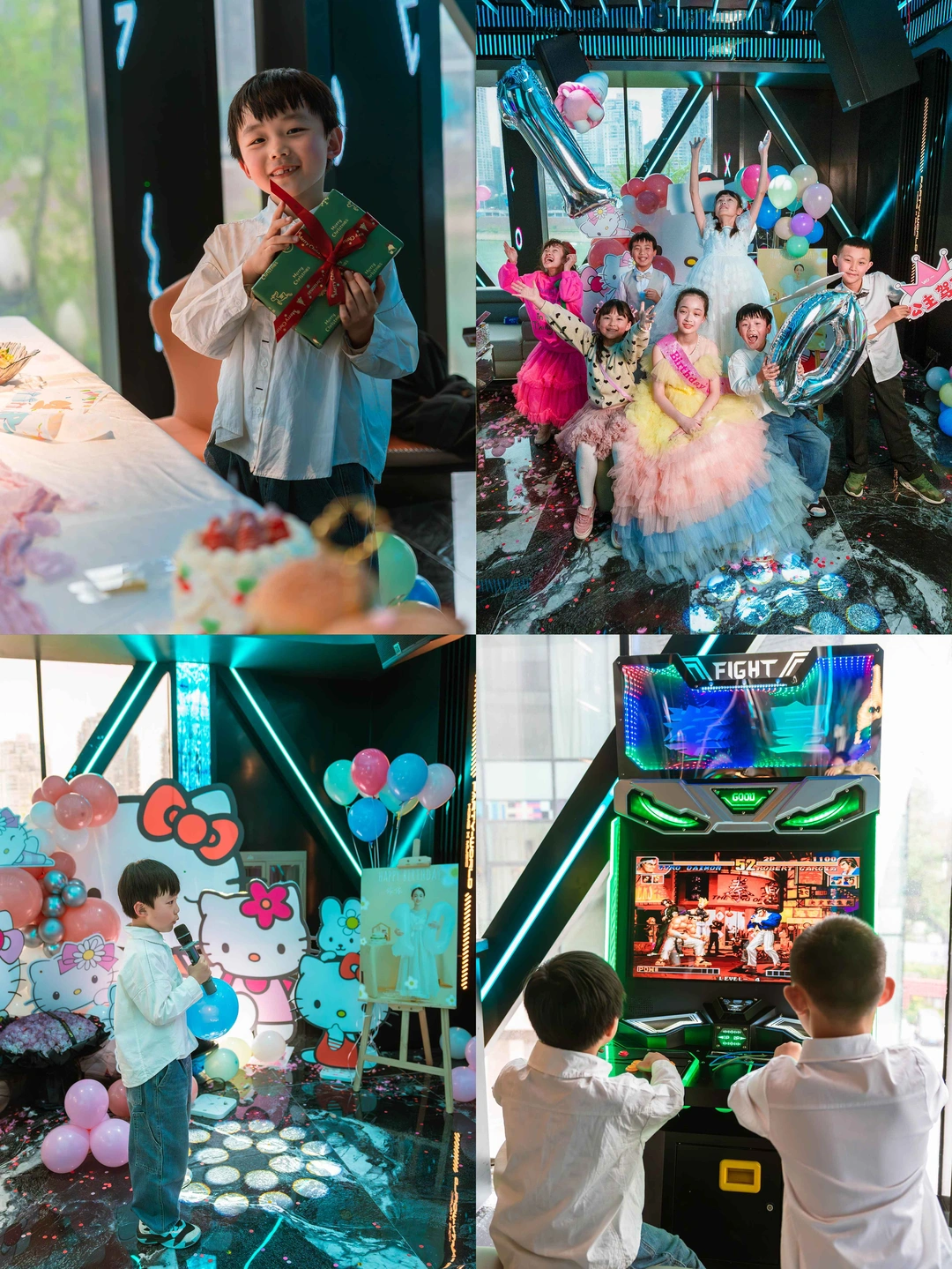 饭后小朋友们继续玩游戏,大人们k歌聊天,完全不用操心“接下来去哪儿玩”。一场派对从下午嗨到晚上,快乐不断档~