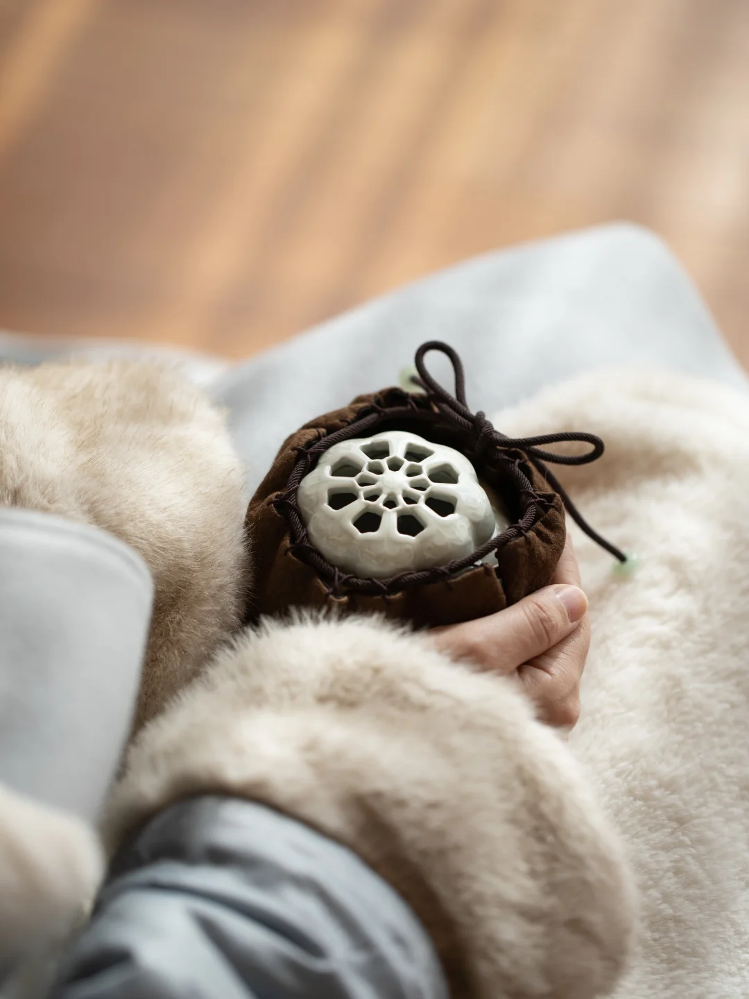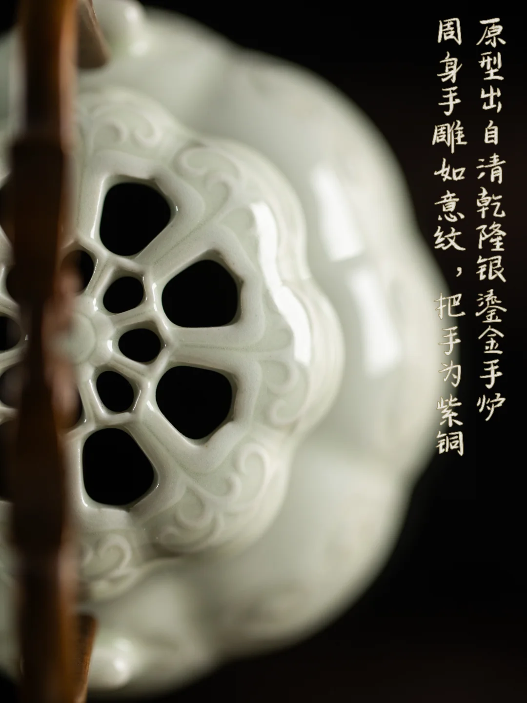 瓜型的炉身,如意纹雕刻周身。内置一枚炭火,捧在掌心,温热从指尖慢慢渗进去。紫铜的提梁,握起来刚刚好。暖了手,才能安下心来做别的事。