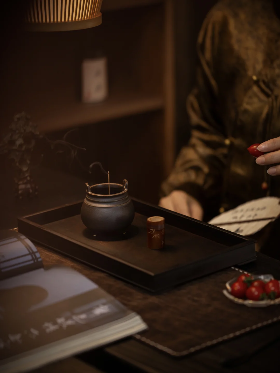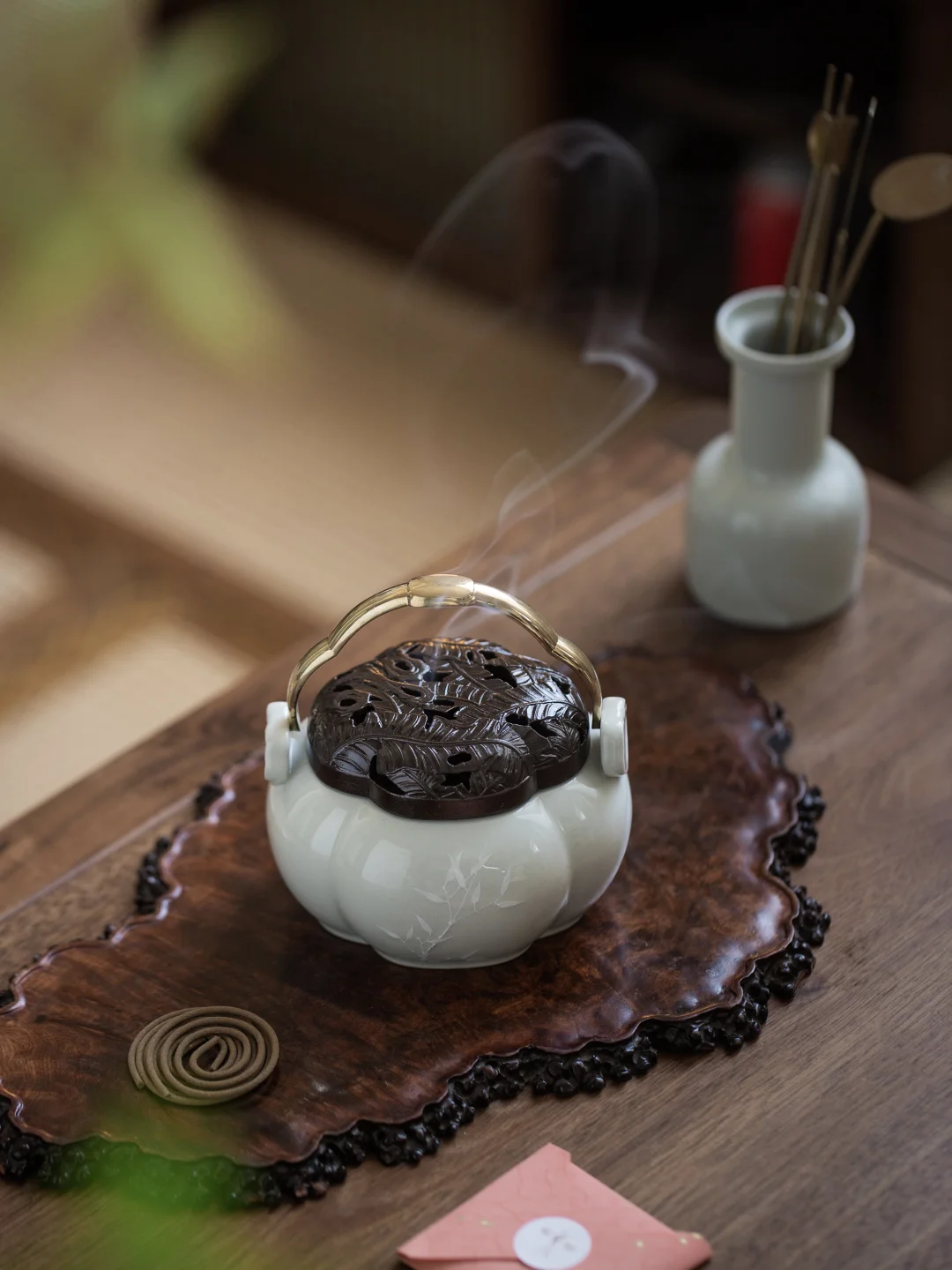 它体量敦实,最耐焖香。放一片香进去,可以慢慢地焖上很久。香气沉沉的,厚厚的,把整个书房都笼在一片温吞的暖意里。坐得住,待得久。