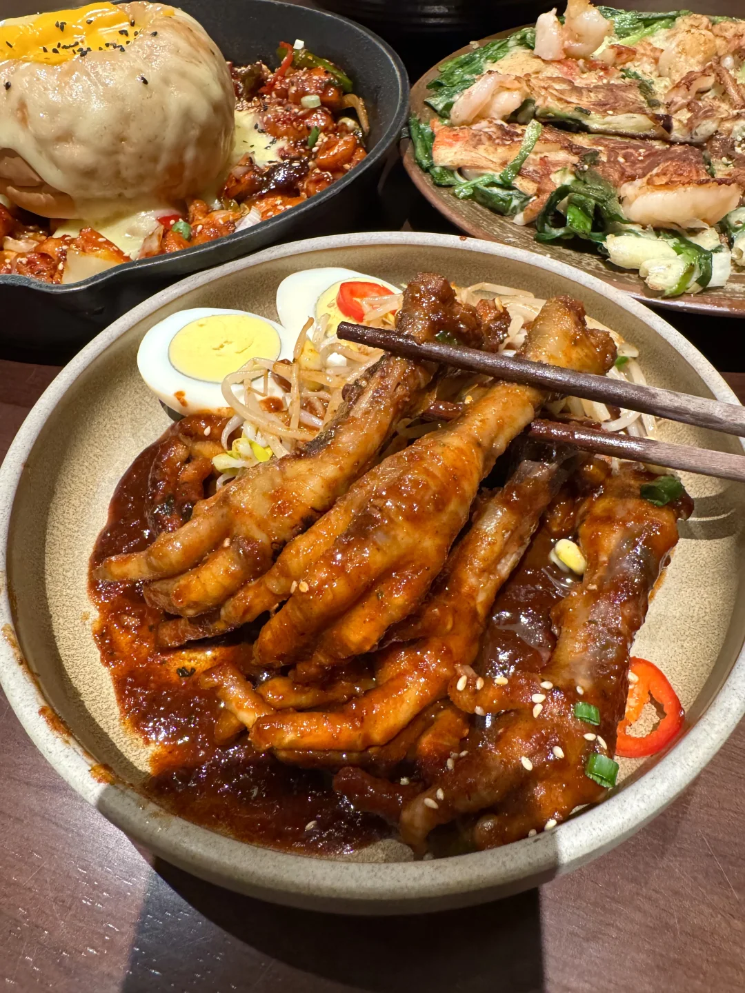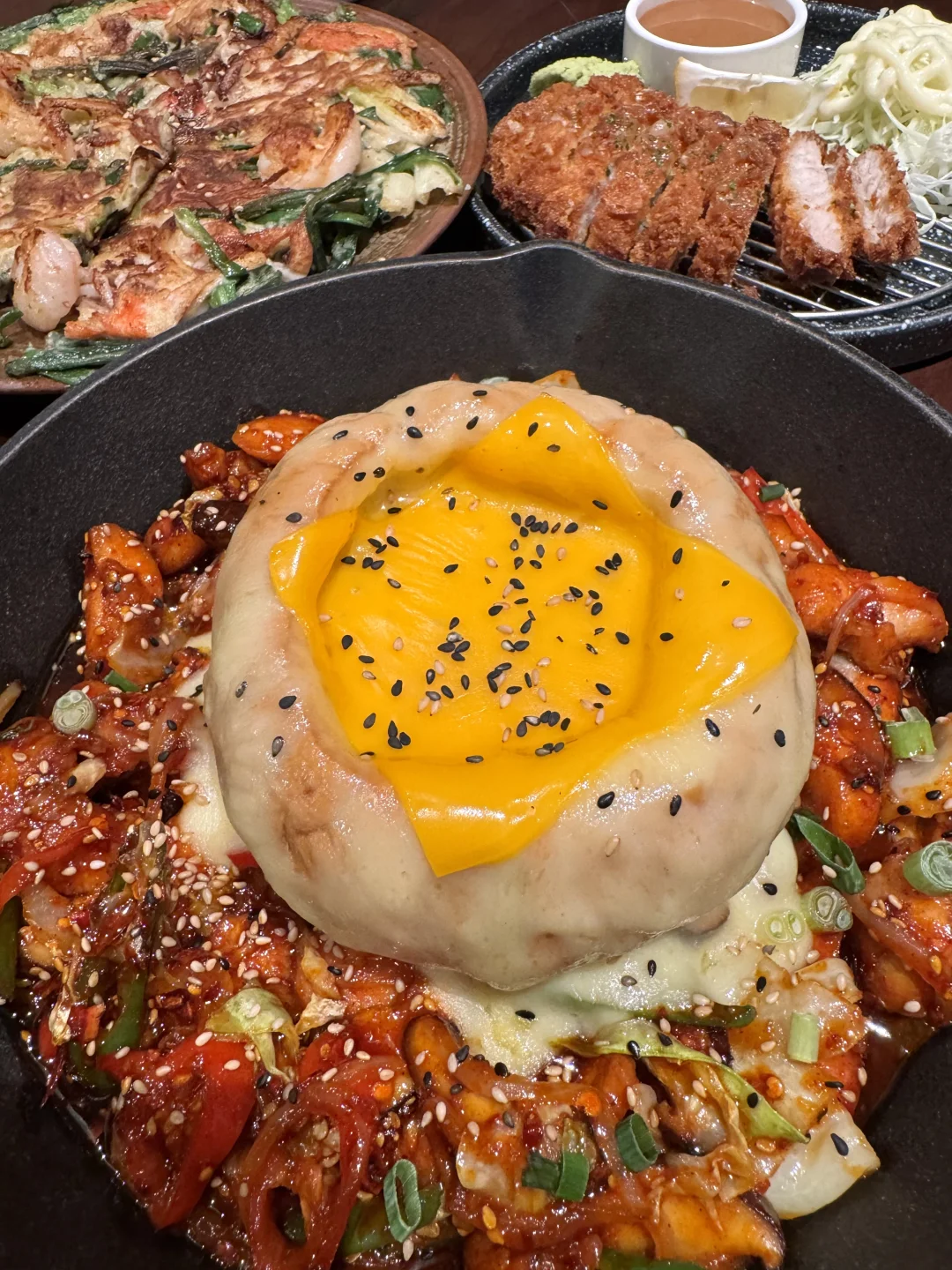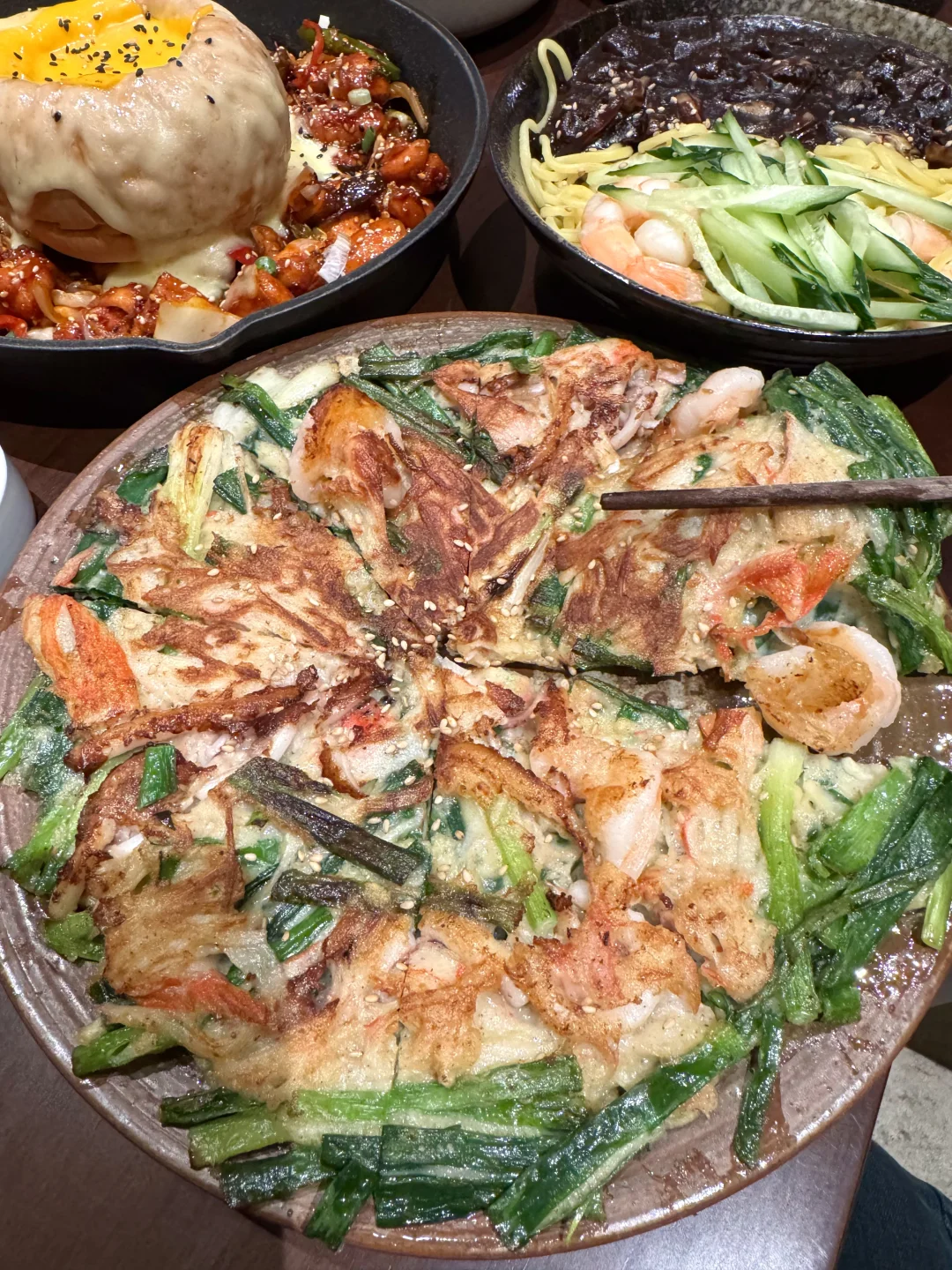 谁懂这一口!甜咸的黑豆酱浓稠挂壁,刺溜一口巨满足! 海鲜饼鱿鱼虾仁满满,粘着酱料真的好好吃…… 大悦城这家,我将来无数次!