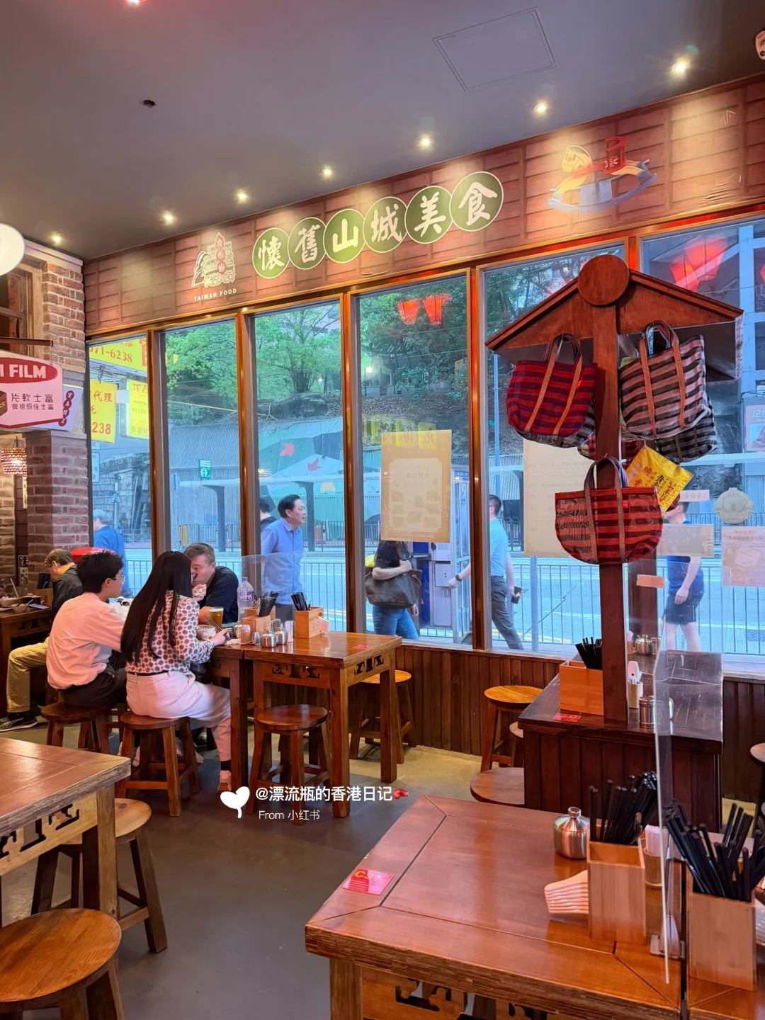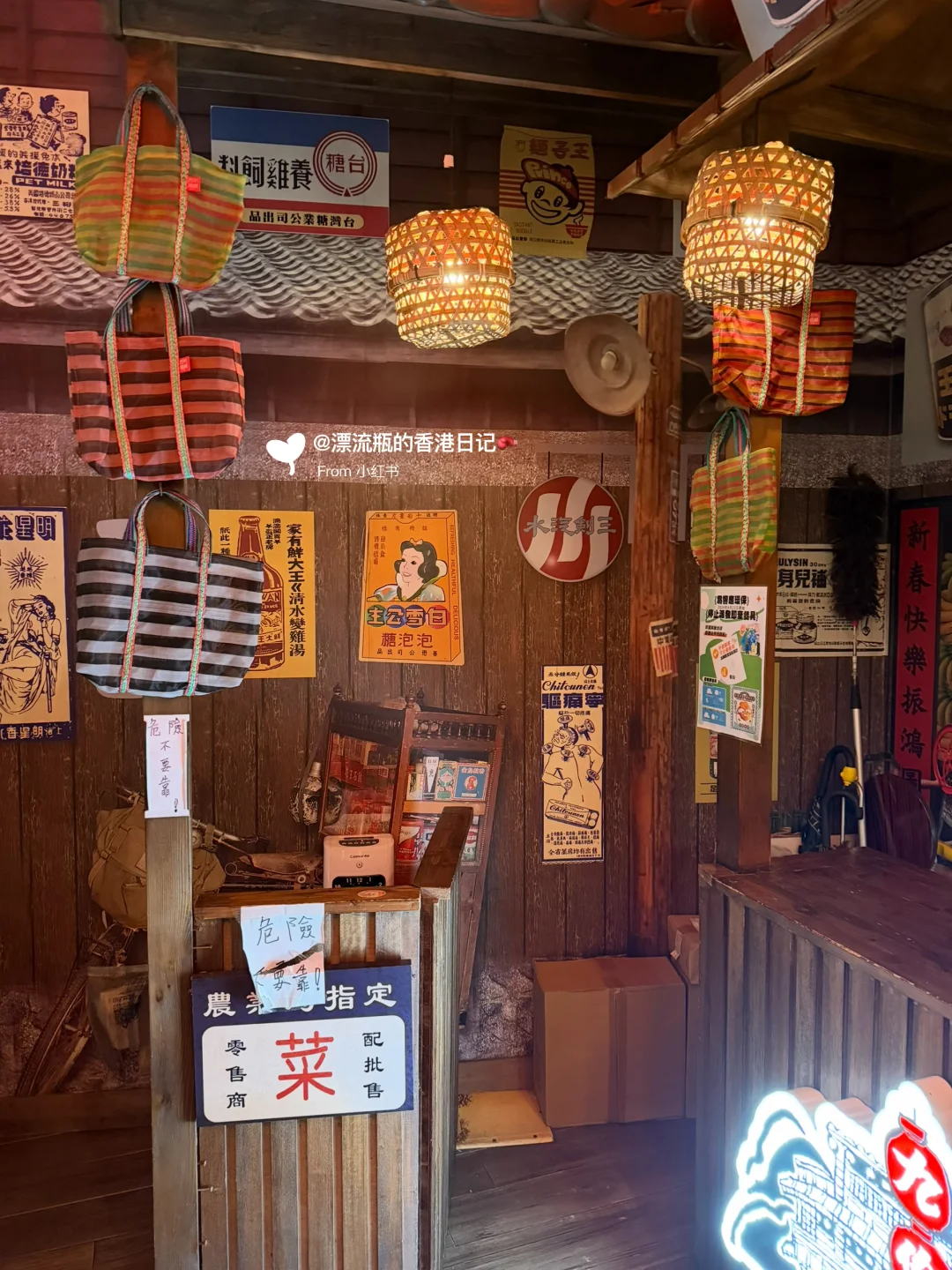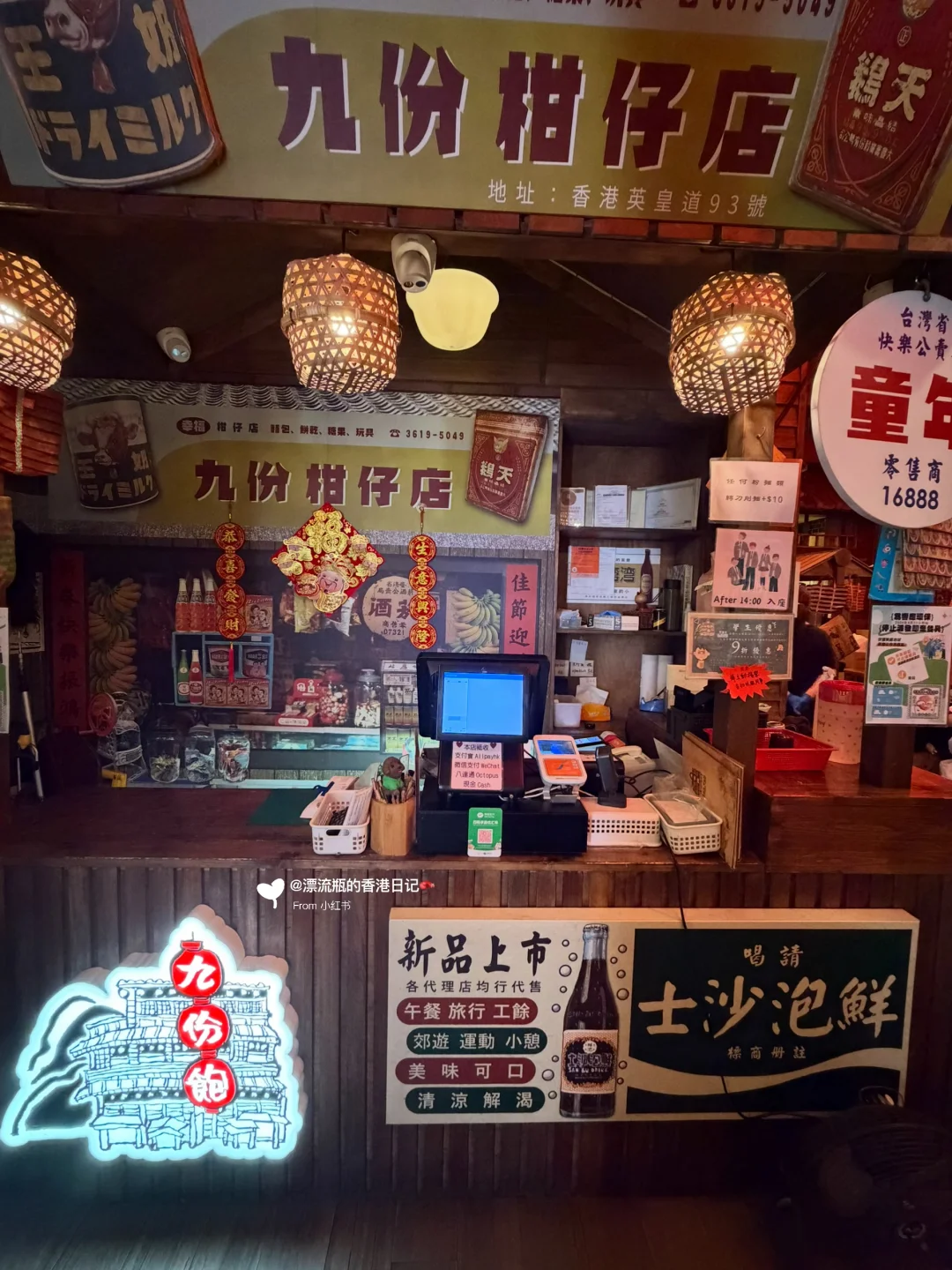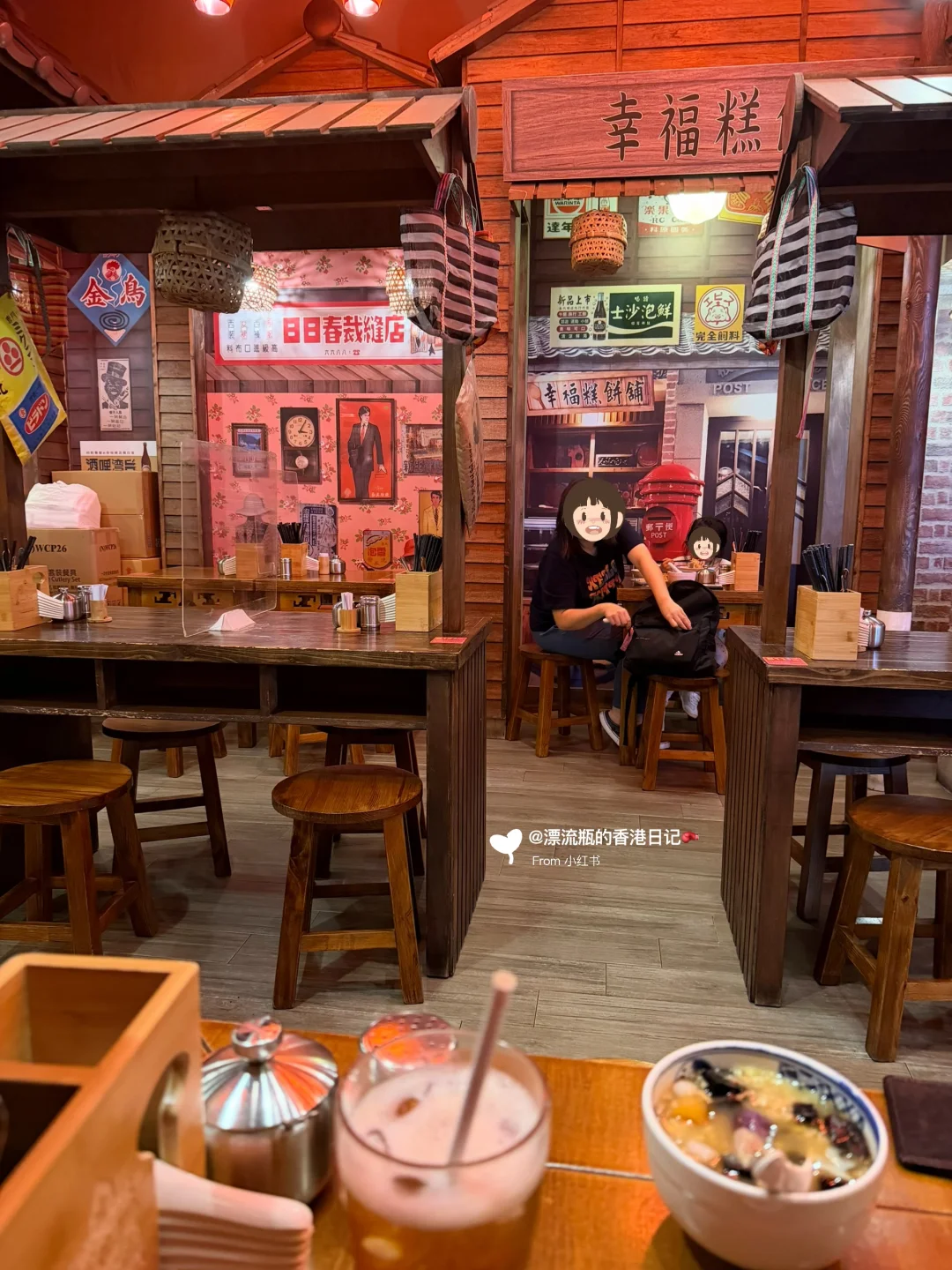 装修应店名,门口是车站🚉,开门进店后有穿越到台北九份的感觉,红色灯光💡主打怀旧氛围。每个座位顶上都是不同的小店招牌