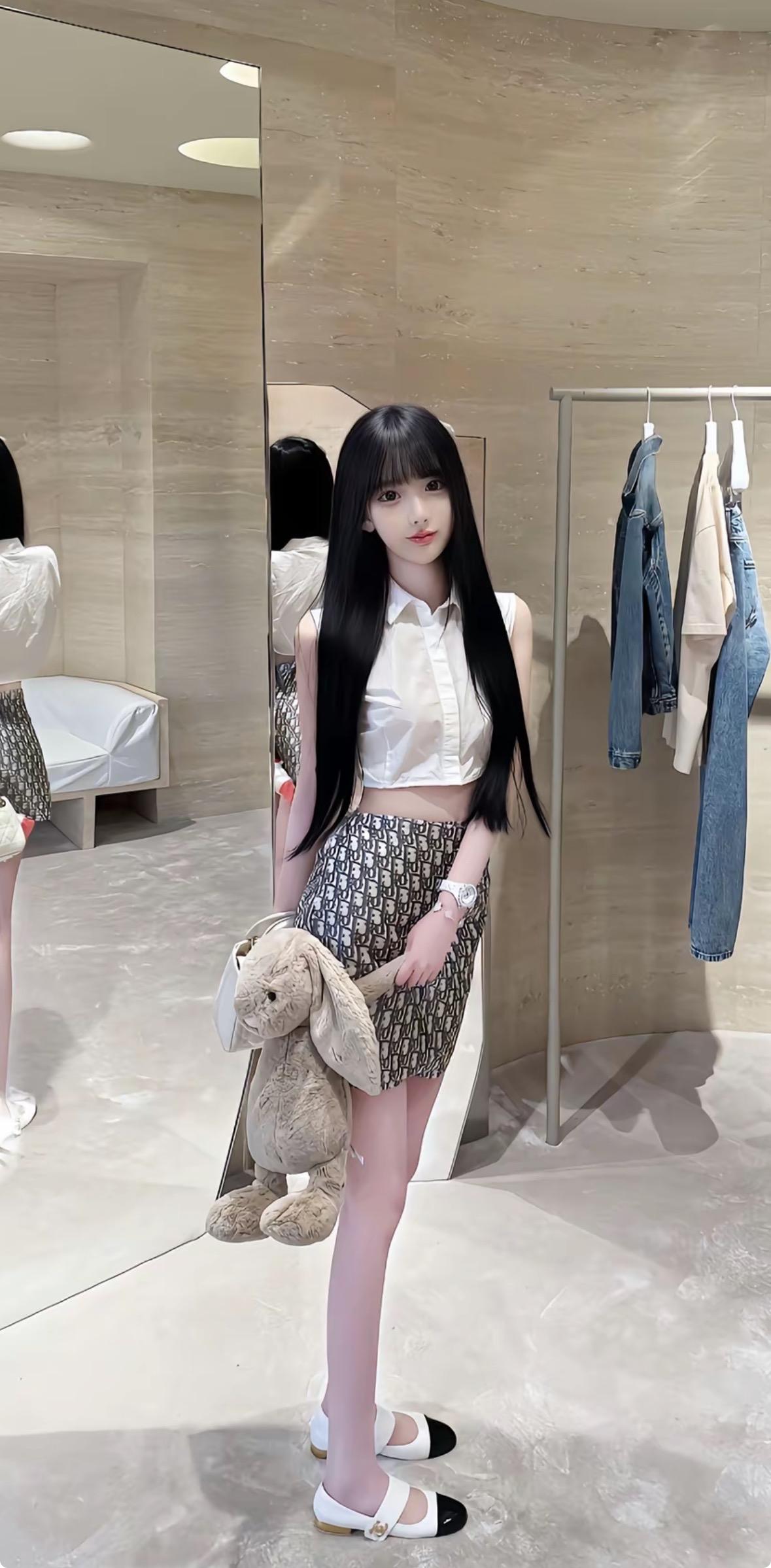 甜美少女风穿搭,白色衬衫+印花短裙,搭配毛绒兔包,可爱满分!💕👗👠