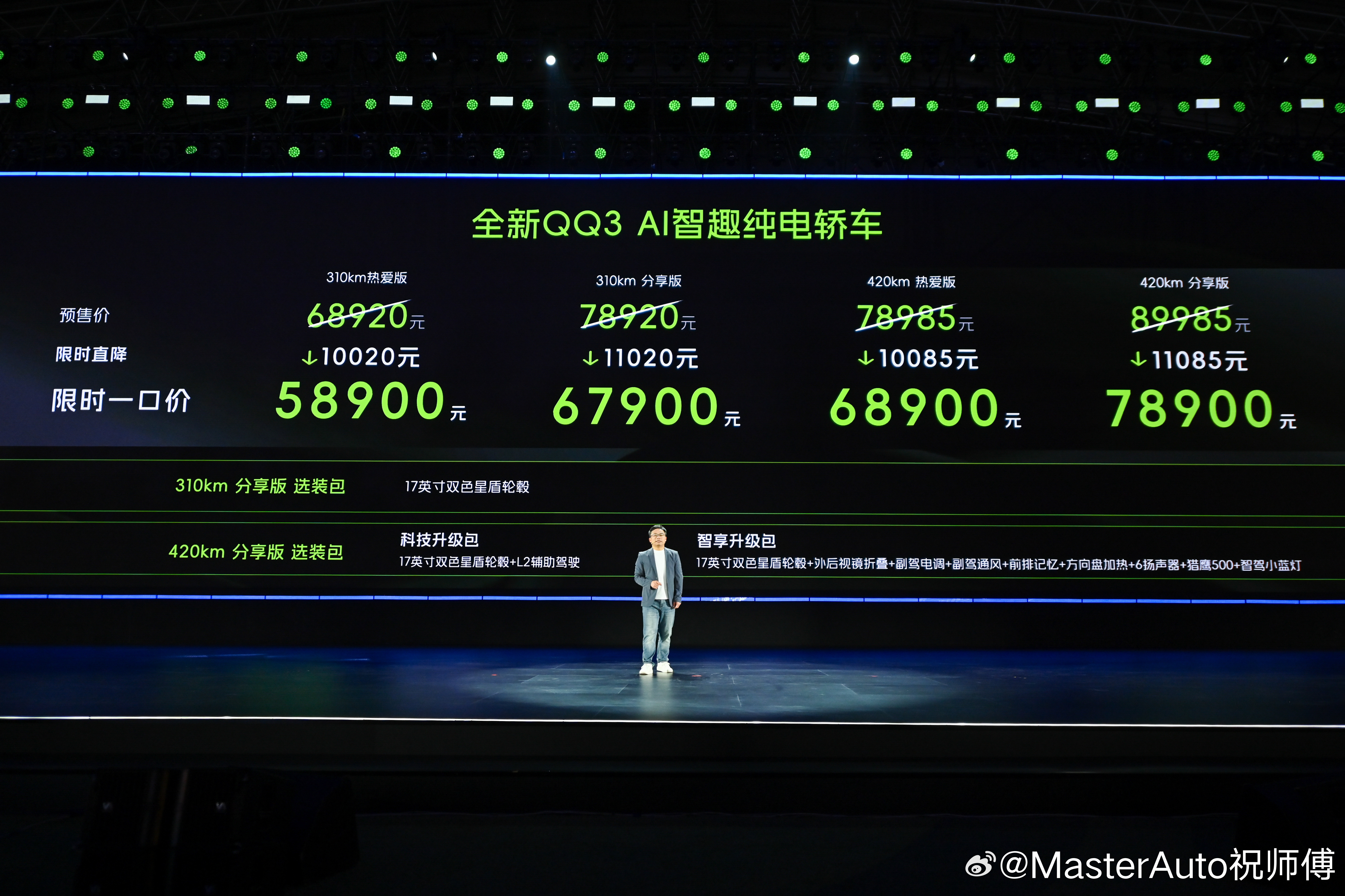奇瑞QQ3绝对是年轻人的第一台时尚小车5.89-7.89万价格,好看不贵 ,谁说小车只能代步?奇瑞QQ3把“颜值”和“品质”一起卷进年轻人的日常。红点双奖团队操刀,23年设计积淀专为Z世代而来。方圆美学+超曲面光影,短悬长轴比例,小车也能有高级感。6种车身色+36色DIY车顶,云粉米、赤焰红、飘逸紫……每天换一种心情,出片不重样。闺蜜同框、周末打卡,你就是街头最吸睛的风景线全新qq3上市王者归来一部到位全新qq3新车上市