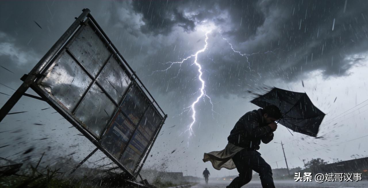 这次不是简单的下雨,而是雷电+9到11级雷雨大风+短时强降水+局部小冰雹一起上阵。