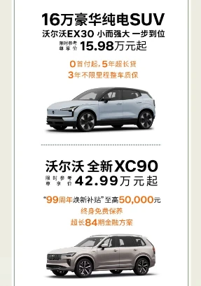🔹EX30:15.98万起,16万级豪华纯电SUV,0首付5年超长贷