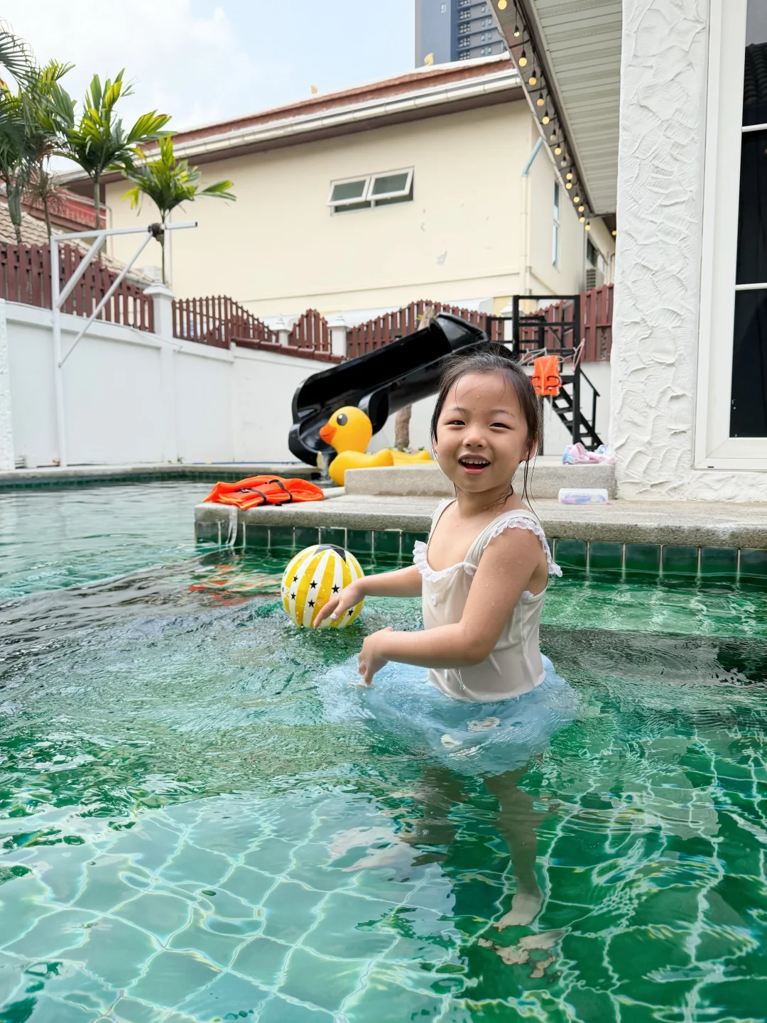 房东准备了网红大黄鸭泳圈和救生衣,娃玩到根本不想上来🤣泳池水明显提前处理过,没什么杂质,这点比较加分。