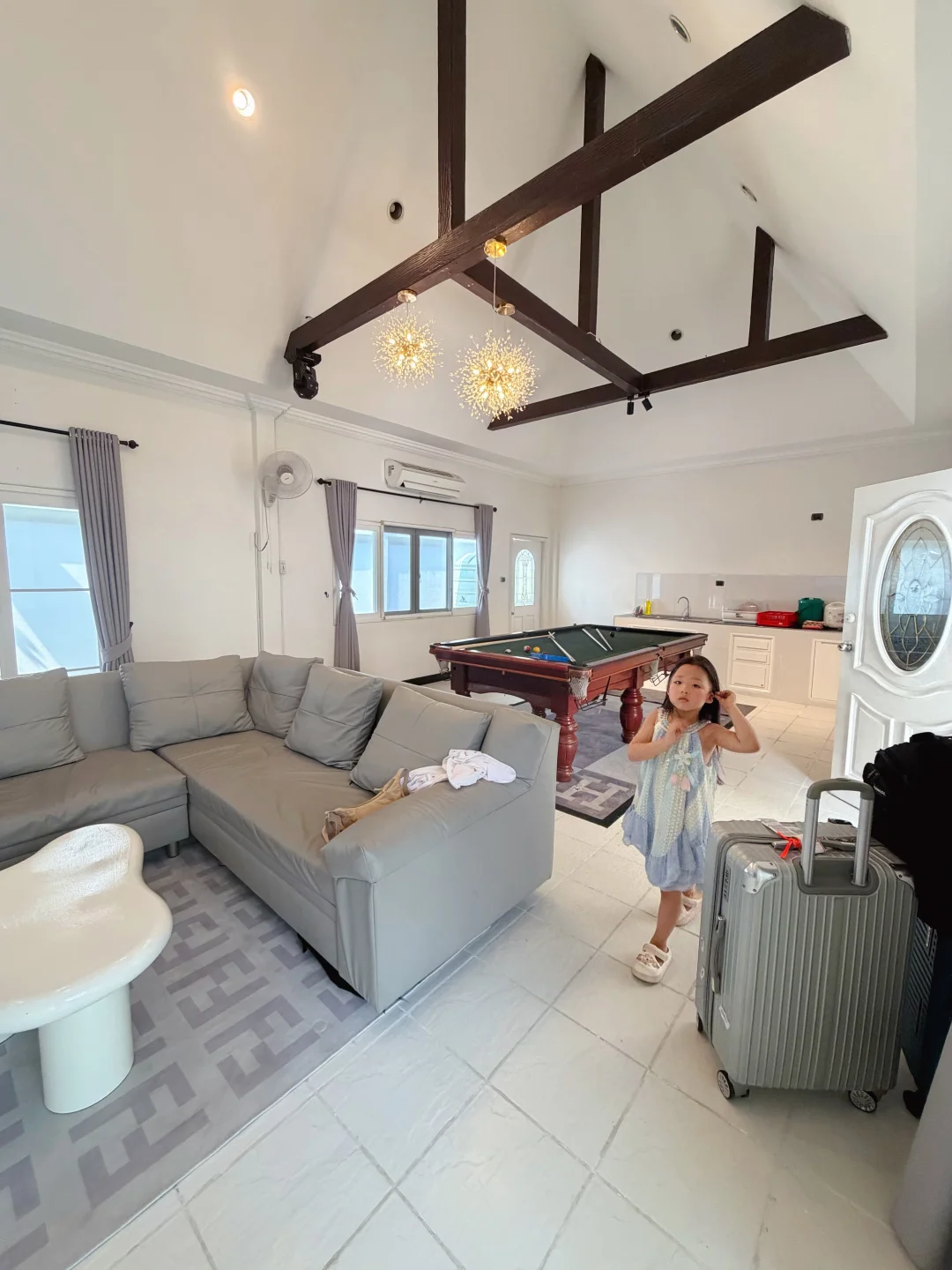 作为度假之选的海边别墅,它完美满足带娃带老人的所有需求,泳池滑梯+夜市遛娃+可做饭+空间超大。中天海滩清净不吵闹,一家老小各得其乐,完全不想出门打卡景点,是非常适合静下来体验度假感的选择。