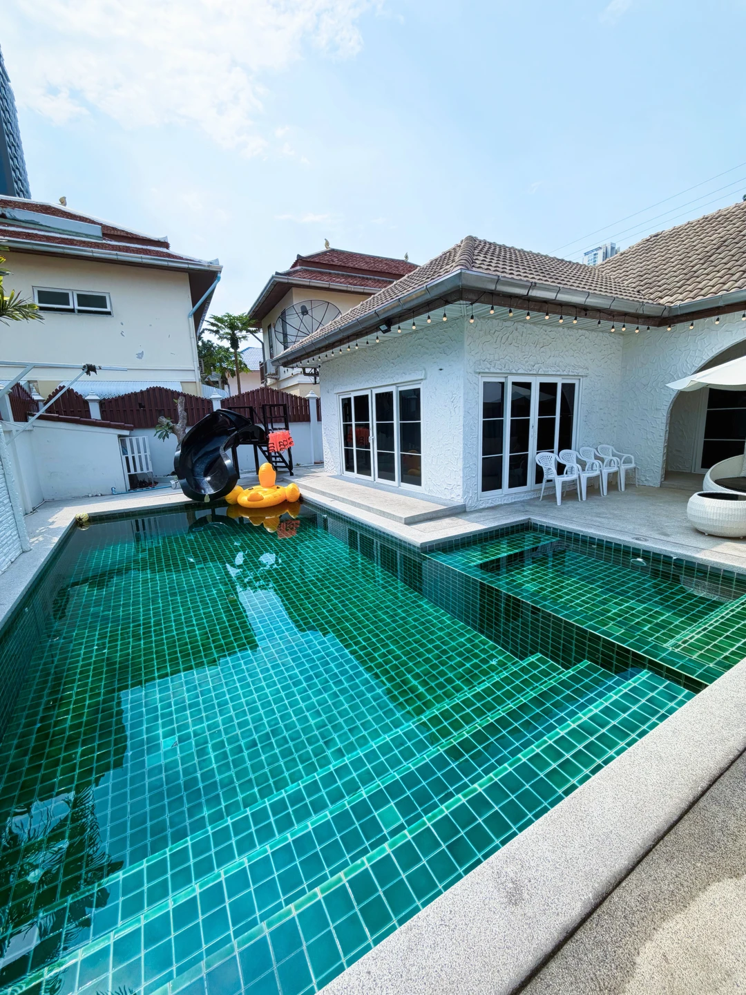🏠 别墅是一栋白色的独立房子,院子里有个带旋转滑梯的泳池,颜值巨高,随手拍都是ins风。