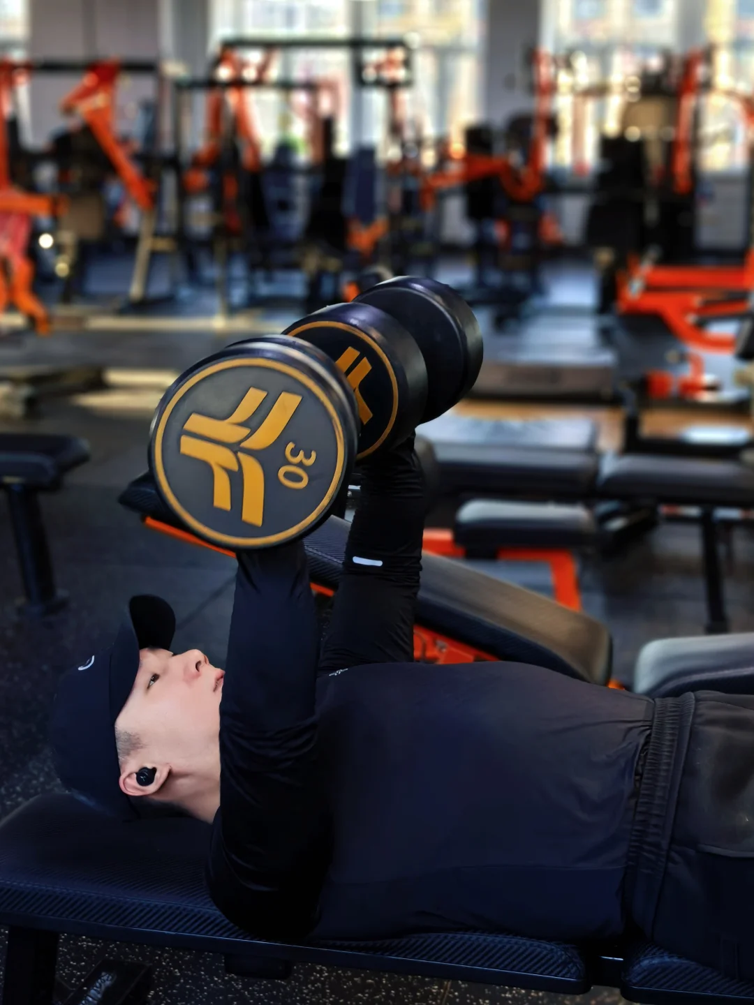 ✅ 平板哑铃卧推:核心动作!30kg哑铃推起,感受胸肌全程收紧发力,主打一个全面塑形,练出饱满胸型