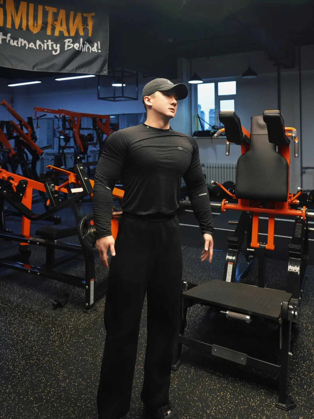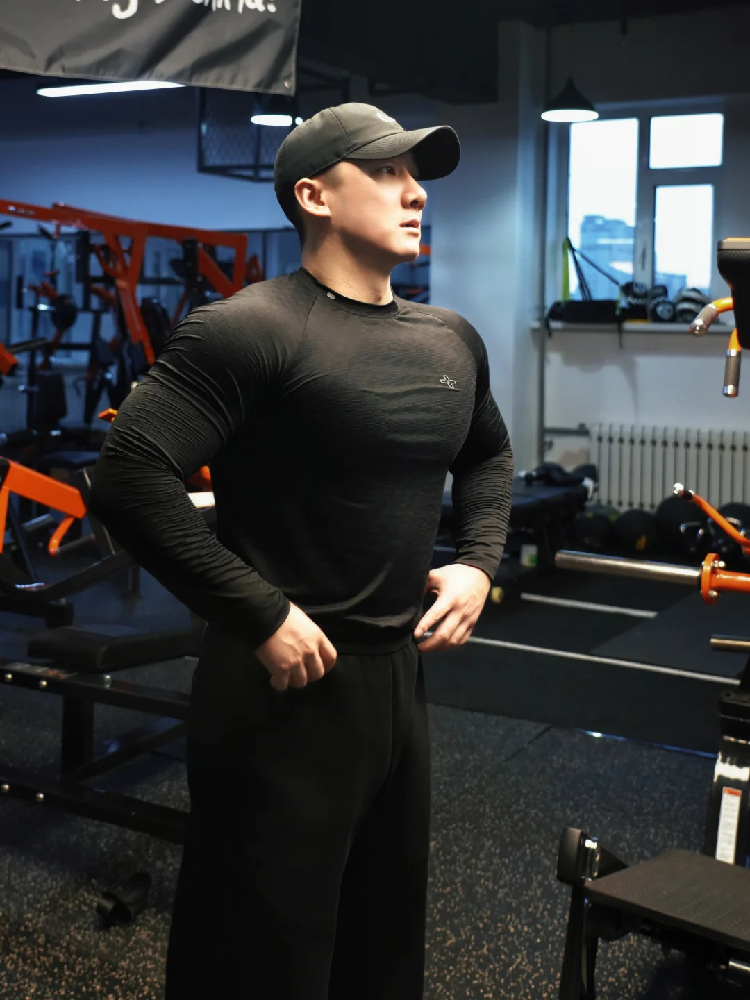 黑紧身长袖+垂感运动裤+棒球帽,这套穿搭直接焊死在身上!