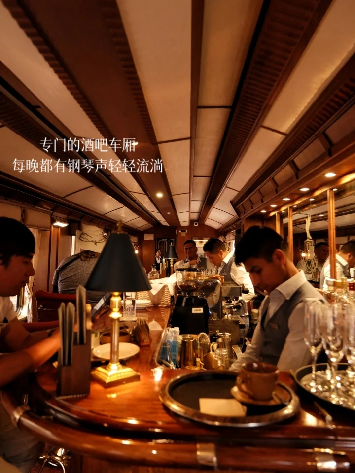 会有专门的酒吧车厢,每晚都有钢琴声轻轻流淌,酒水基本上无限量供应,Bar除非没人在才会关门!也就是如果你想喝,可以喝到天亮~
