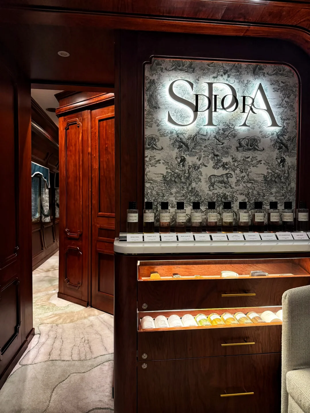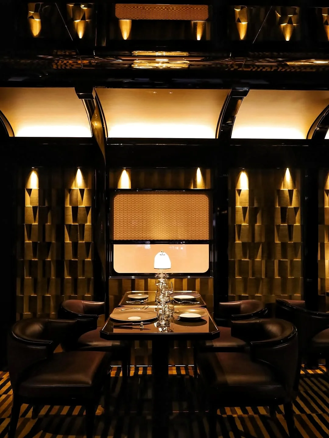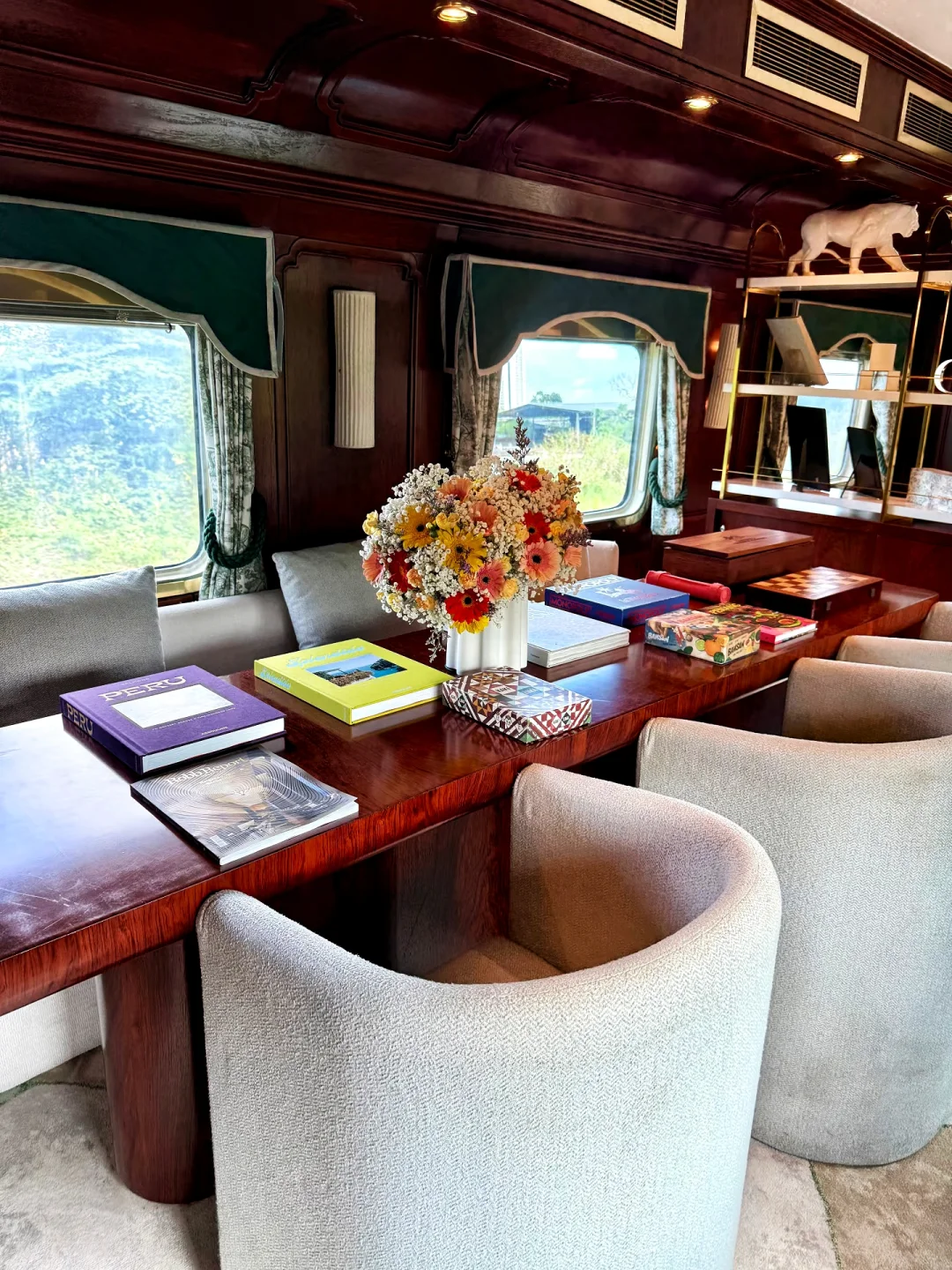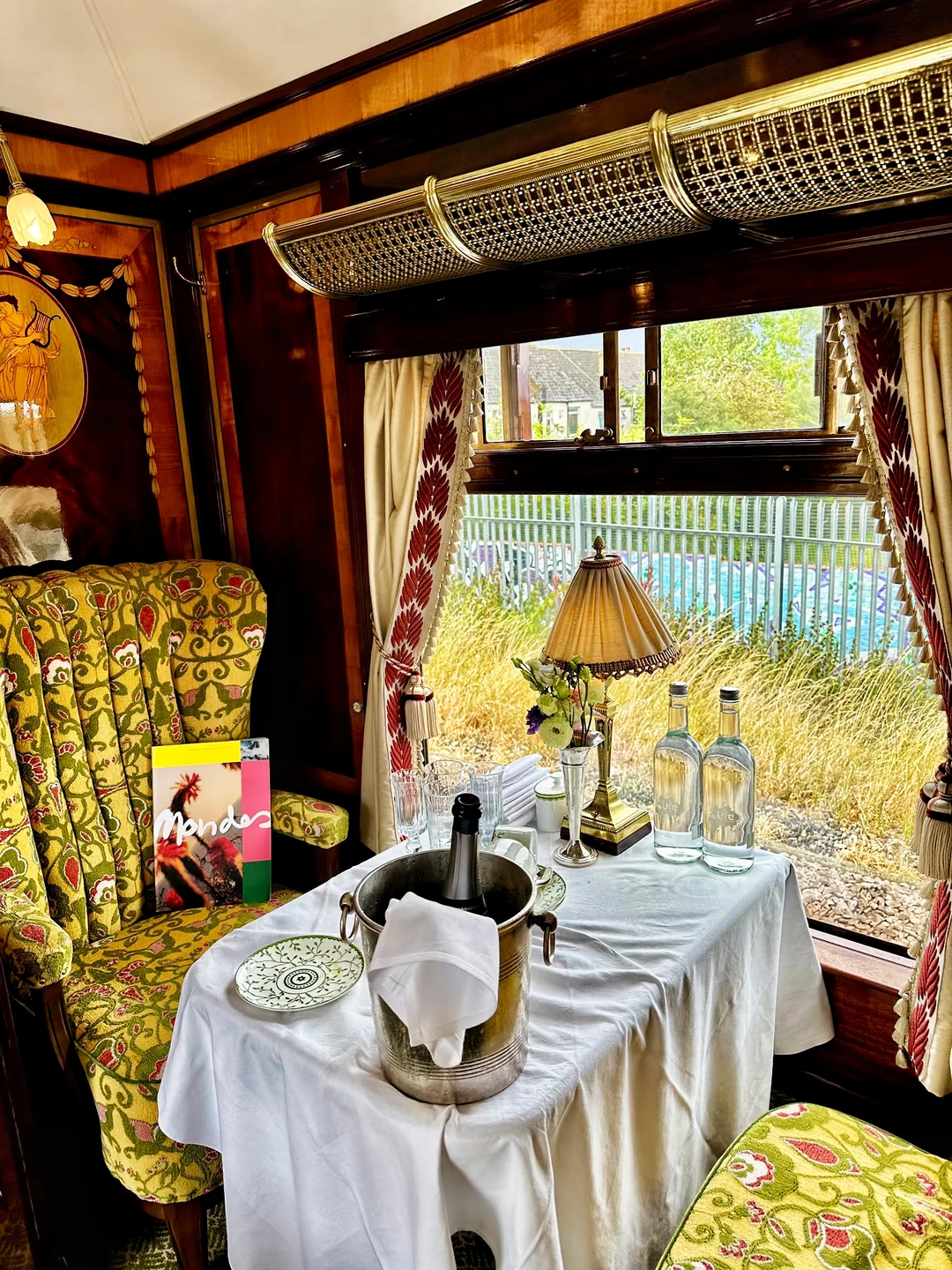 复古车厢,黄铜装饰、木质镶板、丝绒座椅