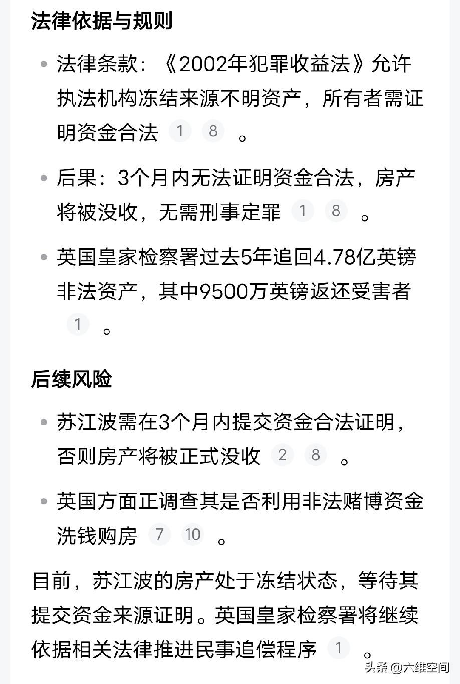 西方开始收割那些钱不干净的中国人了,有很多所谓的有钱人跑到西方,其实大多是钱不干净,以为把钱转移到西方就安全,以为西方真的是私人财产神圣不可侵犯,以为西方真的是契约精神,以为西方真的是公知宣传的文明,结果西方以无法提供资金合法证明,直接没收你的财产! 英国最近就没收了一个中国人7.38亿的房产,直接要这个人提供资金合法证明,提供不了就没收房产,在国内估计要闹起来,说工作人员刁难普通人,但是到了西方,人家可不是跟你闹着玩,你有钱又能怎样,给我们提供你的钱是合法的钱,这个更绝了!