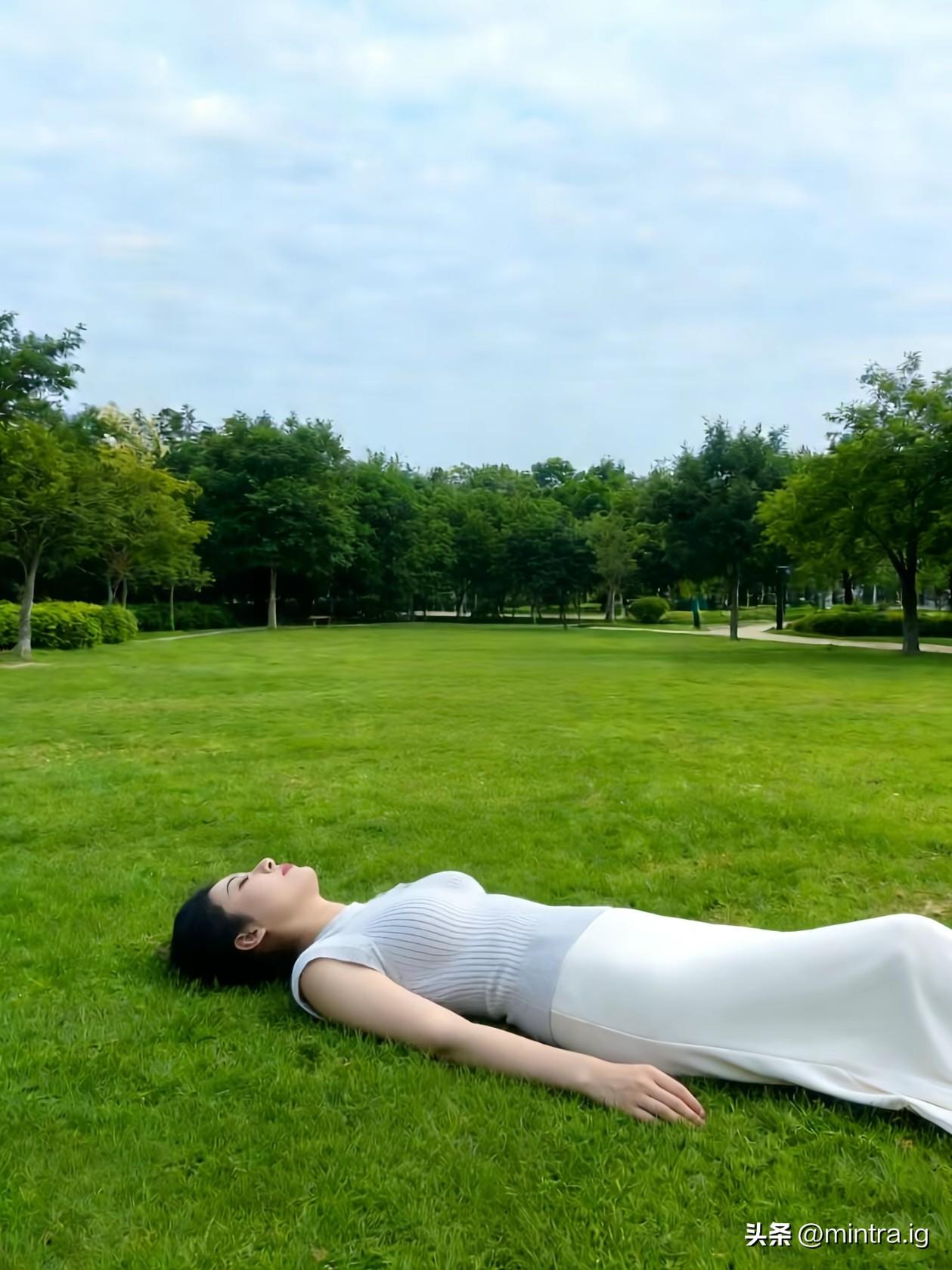 把自己摊在夏日的草坪上,让风裹着草木香漫过全身。 抬头是云影流动的蓝天,身边是绿意漫溢的旷野,在无人打扰的片刻里,和温柔的自己撞个满怀。 不必追赶时间,只在这片绿意里,把生活的疲惫轻轻放下,让身心都浸在松弛与治愈里。