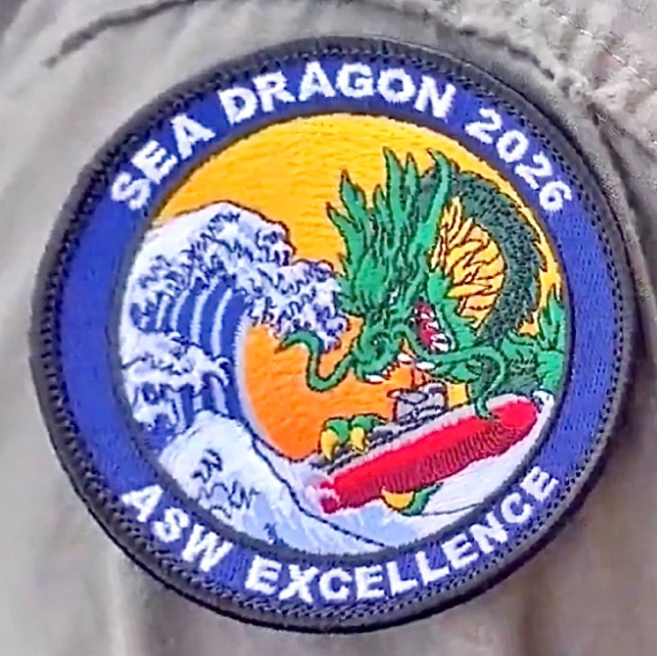 更引人注目的是,此次演习的臂章设计极具指向性,描绘了一条海龙从日式神奈川海浪中将一艘中国海军09IV型弹道导弹核潜艇抓出水面的场景。
