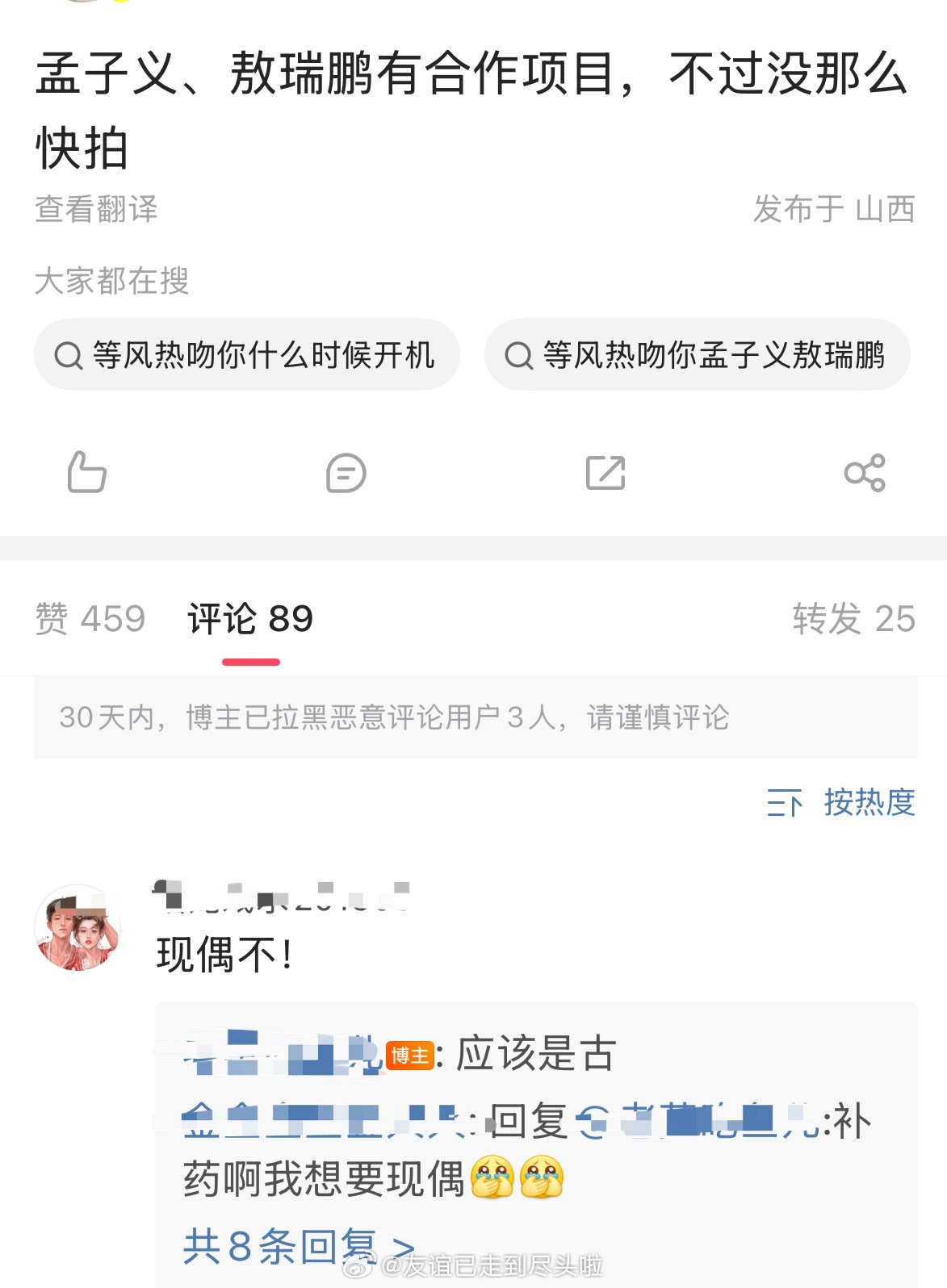 🍉《一手摘星一手捶地》主演孟子义、敖瑞鹏 。之前传他们的是现偶《等风热吻你》