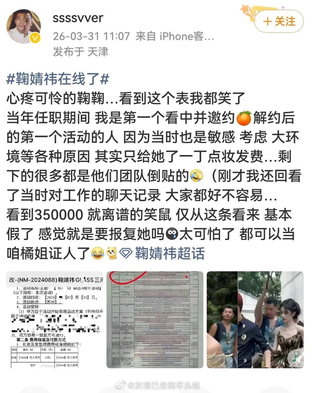 有业内帮鞠婧祎澄清那张收入申报表,说glass活动只给了妆发费,其他是鞠团队贴钱