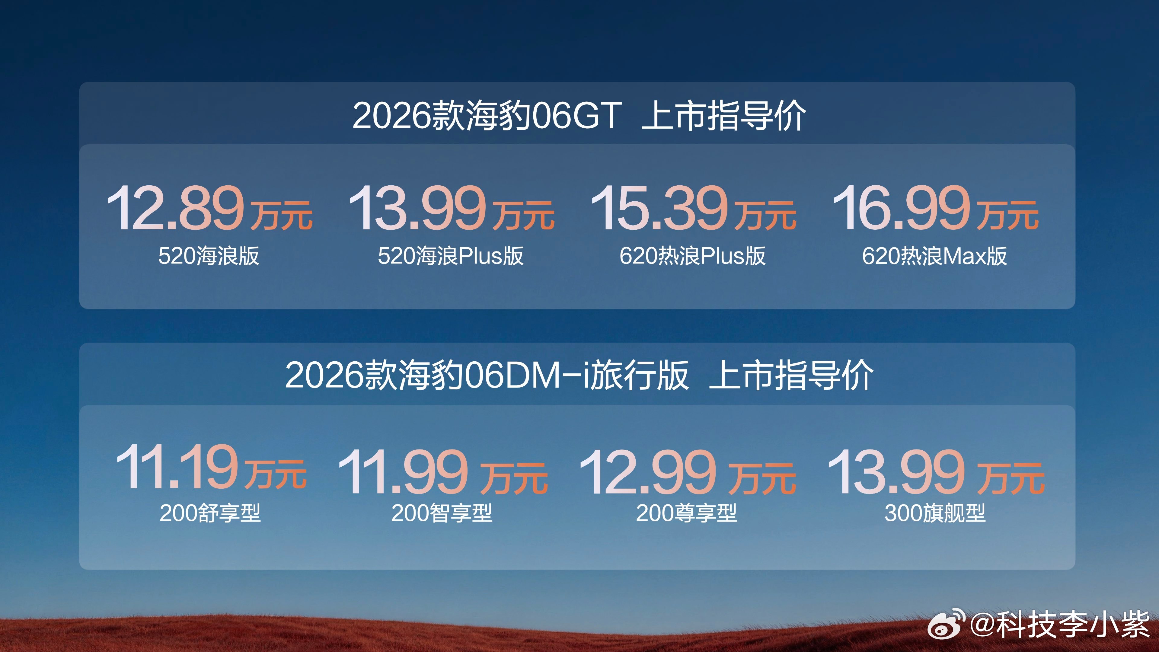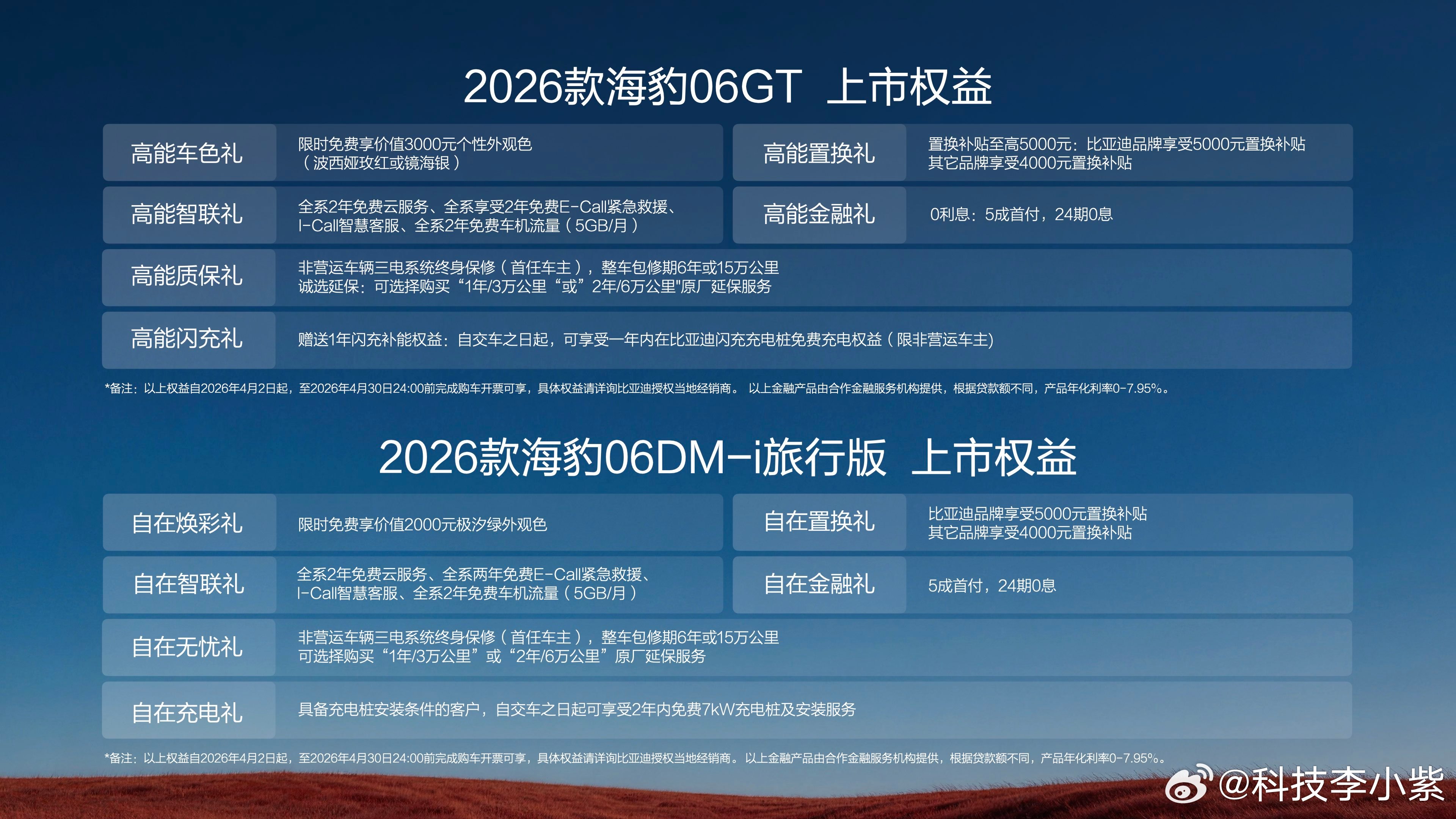 各位友友,2026款海豹06GT与2026款海豹06DM-i旅行版已经同步上市了,一个主打“年轻人的第一台GT”,一个主打“全球精品超混旅行车”,关键价格真不贵。
