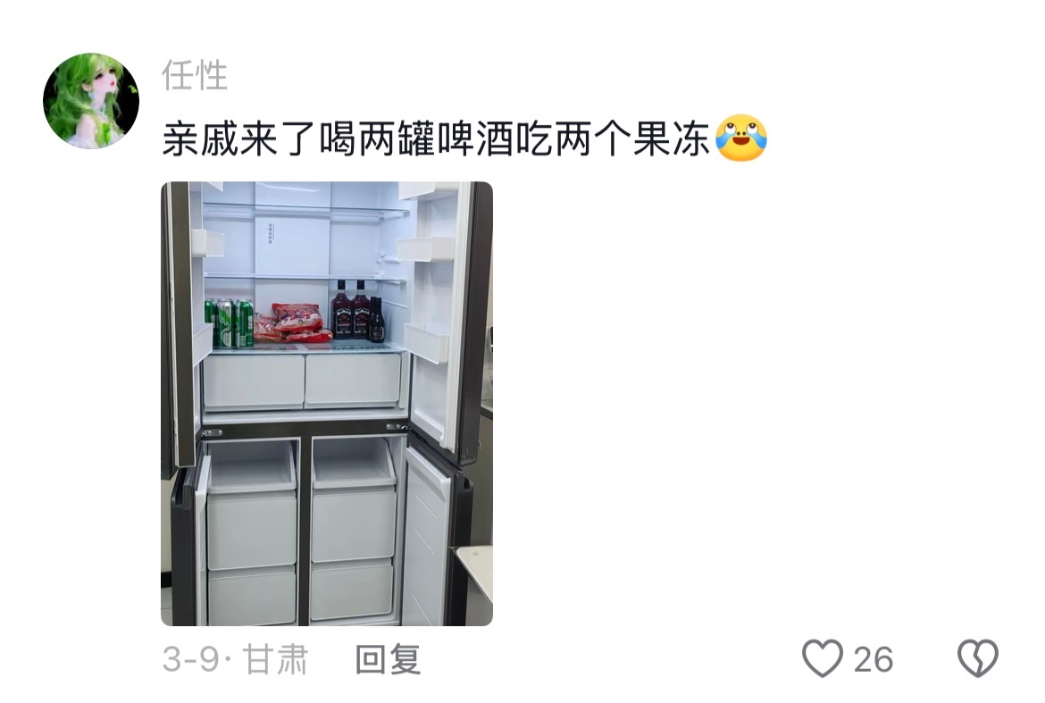 当代年轻人的冰箱亲戚来了都得喝西北风哈哈哈哈