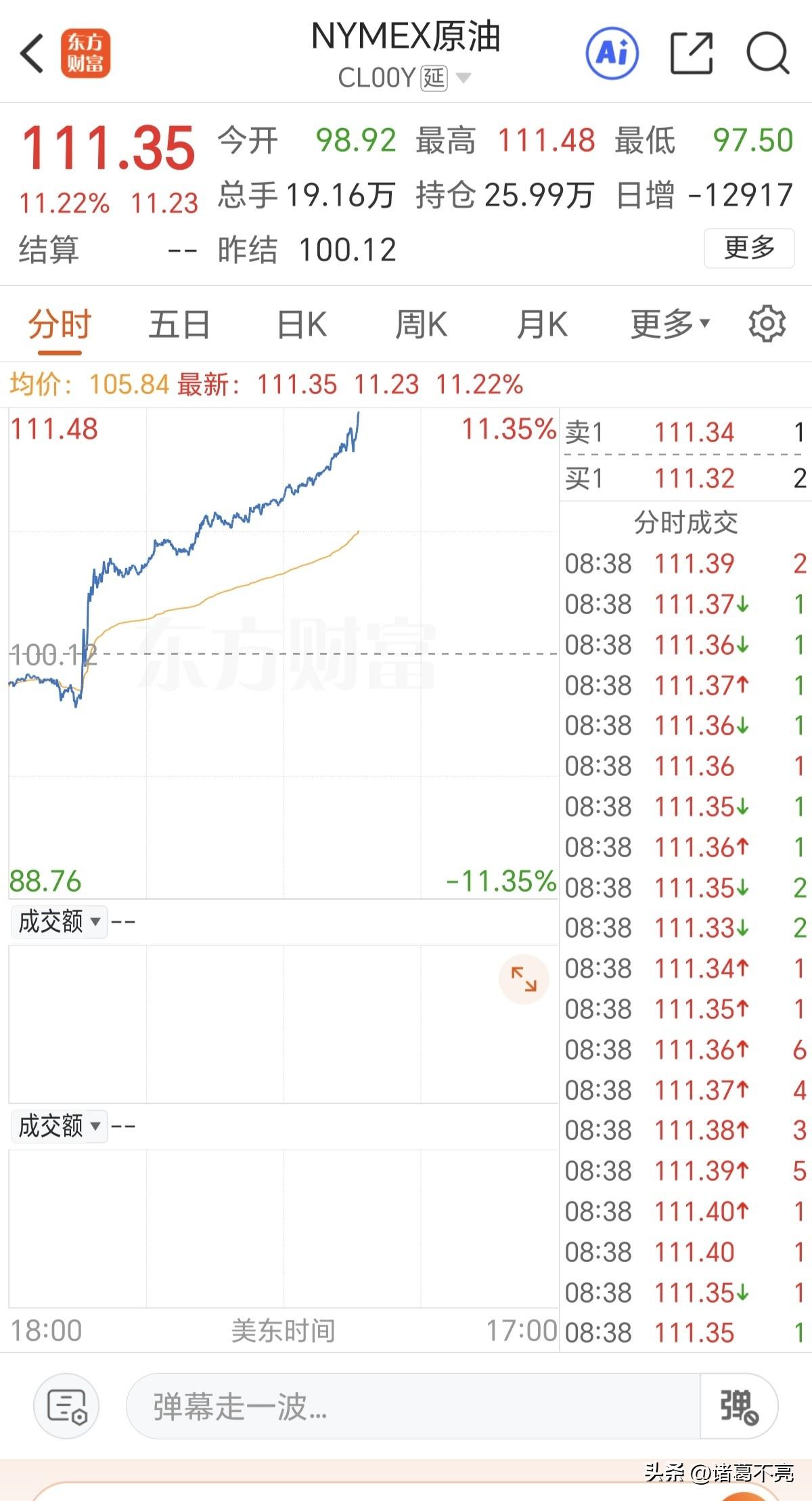 对原油期货的上涨脱敏了吗?还是国际资金理性看待了,纽油涨幅11%了,富时A50指数期货基本没怎么调整啊,恒生指数期货调整幅度很浅啊。 这要是原油期货下来,指数期货不得迎来上涨啊,看看明天早上收盘情况吧[流泪]