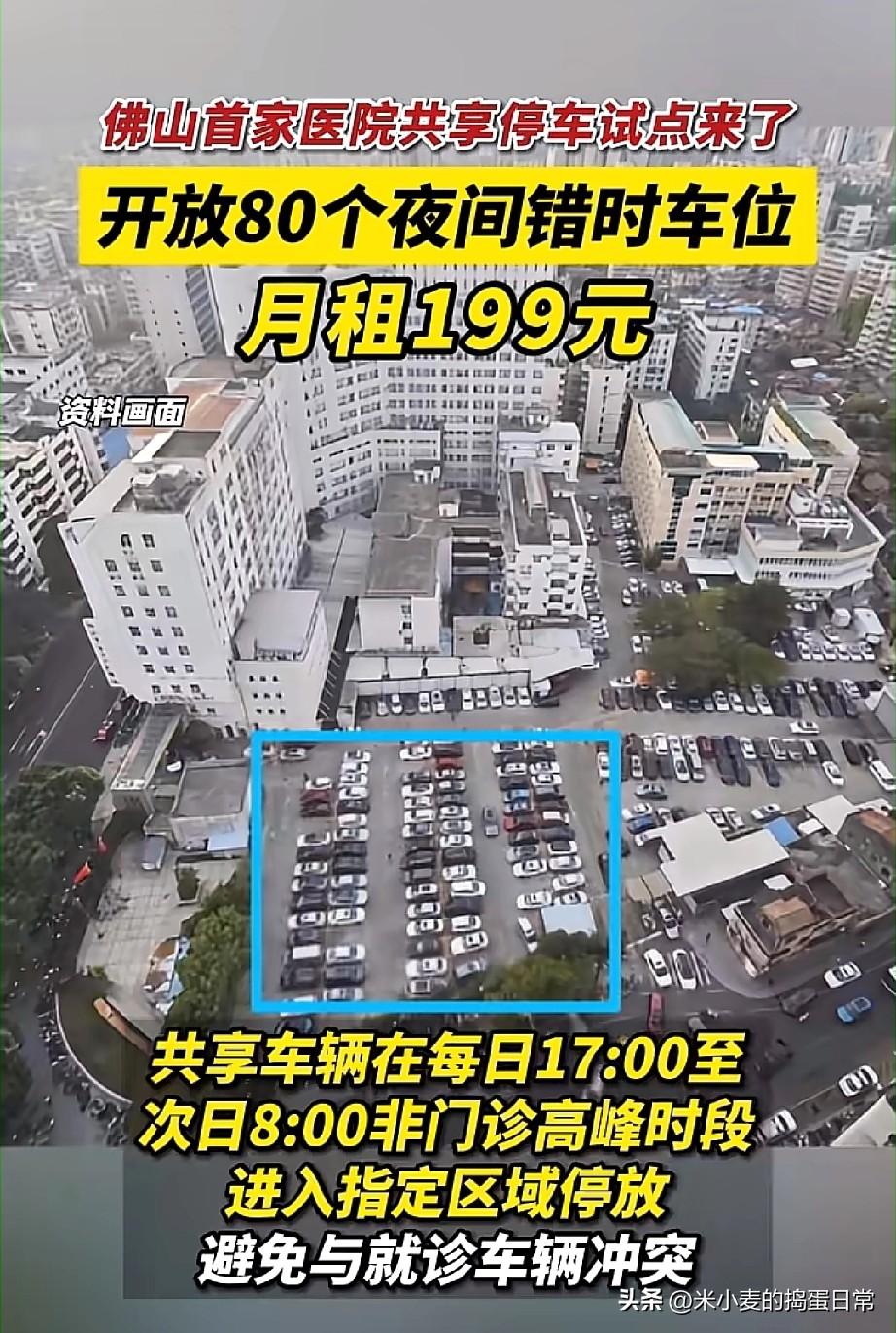 佛山车主有福了!医院车位月租199元,解决停车难 佛山禅城终于出手解决停车难题了!4月7日起,市二医院卫国路院区推出共享停车,80个夜间车位月租仅199元,这波操作太贴心! 每天17点到次日8点,周边居民就能错峰停车,完美避开就诊高峰,既不耽误医院看病,又能解决老小区车位紧张的问题。199元一个月,算下来一天才6块多,比路边临停划算太多,再也不用为找车位绕路发愁。 医院资源合理利用,居民停车有保障,这才是民生实事该有的样子。希望这种模式能推广到更多医院、学校,让佛山停车不再难。 大家觉得这个价格合理吗?你家附近有共享停车吗?