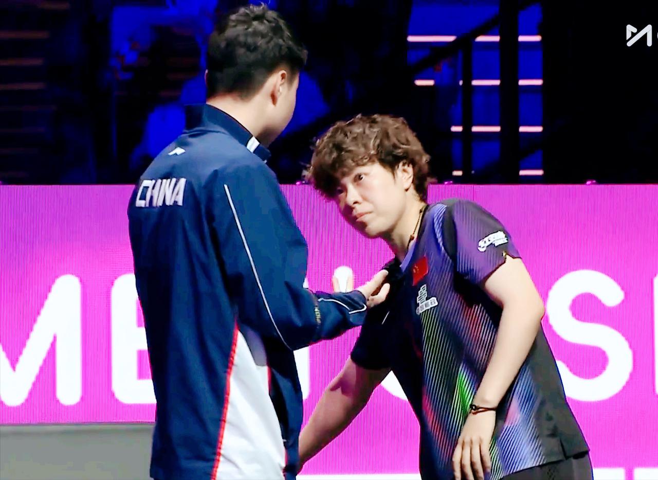 刘国正刚说:张本美和非常喜欢拧拉,千万不要发她左半台。 结果大迪就发到了左手位, 张本美和真拧了。 开局两人打成了3:3平, 随后大迪反手加旋转, 张本美和借不上力, 连续失误, 大迪7:3拉开比分, 张本美和陷入了自我怀疑, 大迪10:3拿到了局点, 开始打大迪正手, 连追4球, 最后大迪11:7拿下。