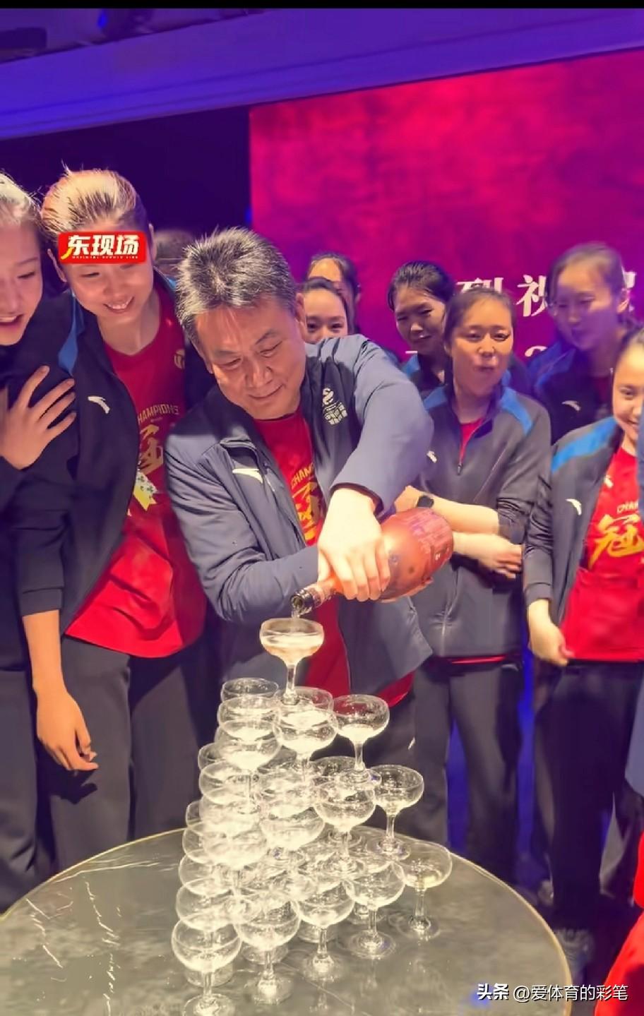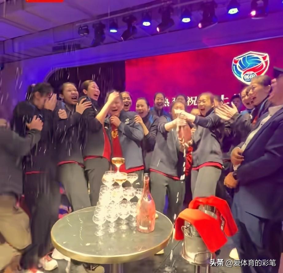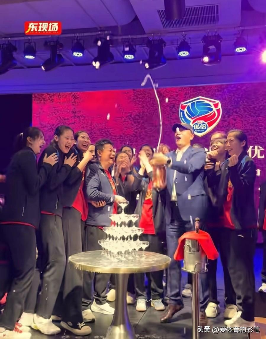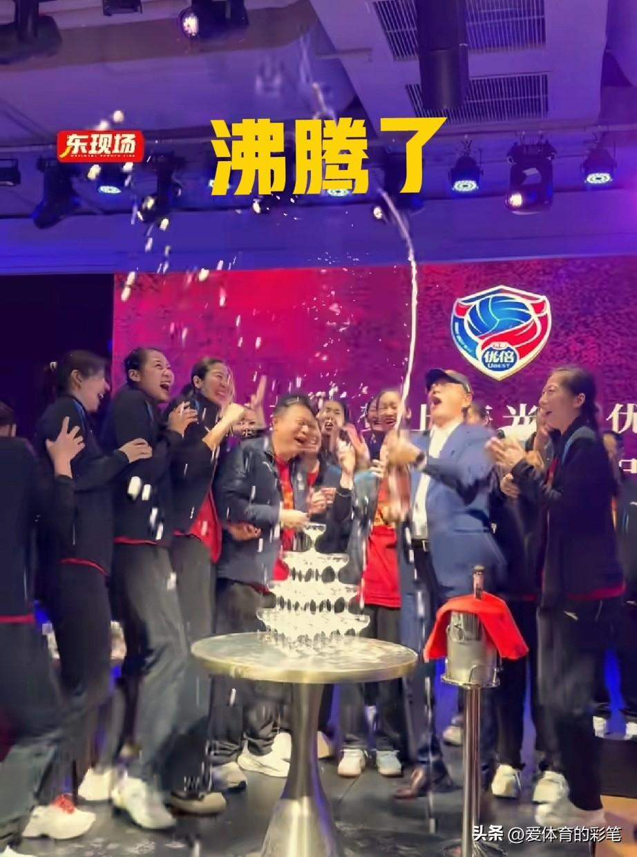 上海女排庆功宴[呲牙],喷酒时,哇哇的尖叫声,呲呲的酒花声,啪啪的鼓掌声,整个现场热闹的像过节一般,气氛顿时沸腾了。 喝酒时,满脸笑容的蔡斌教练,止不住激动的心,举起杯,“咕咚咕咚”,一欣而尽,尽显豪爽大气,干脆利落之风。夺冠真好啊,队员喜悦,教练开心,赞助商满意,一切都那么美好。期待下赛季,蔡斌团队还能如此圆满。上海女排换帅 上海女排啦啦队 女排夺冠瞬间 女排夺冠名场面