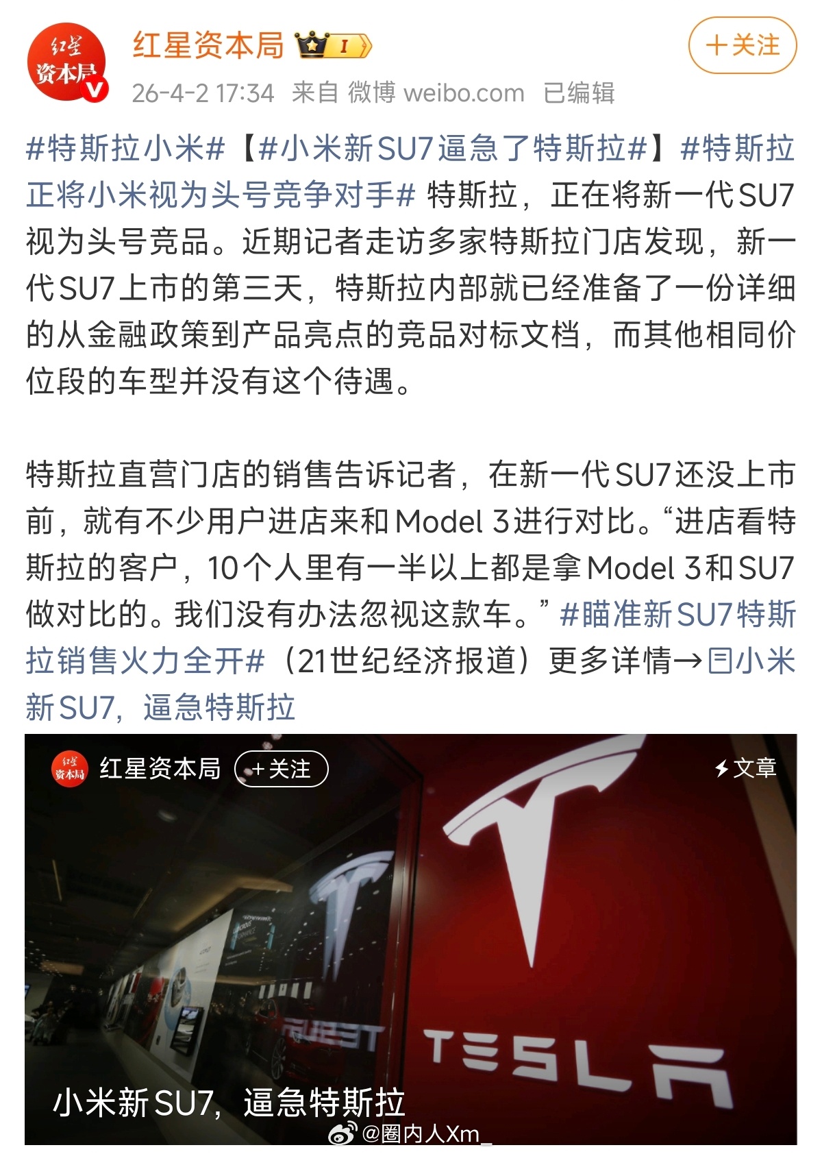 特斯拉正将小米视为头号竞争对手特斯拉用行动承认了,小米才是它在中国市场的头号对手!