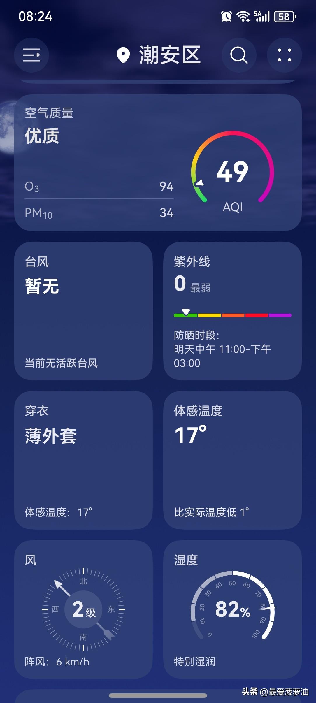今天(2日),潮州喜提一个阴天,气温17~23℃,此刻气温18℃,体感温度17℃。