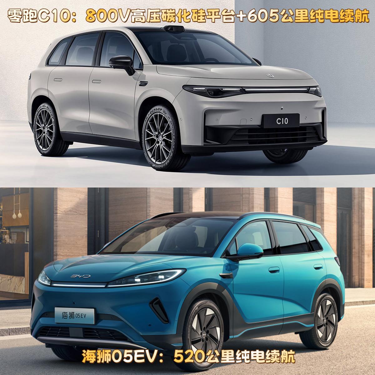 技术派奶爸的选择题:零跑C10与海狮05EV,谁更懂家庭? 在新能源家用SUV市场,零跑C10和海狮05 EV都是很有吸引力的选项,定价相近、都瞄准家庭用户。但对于看重科技和体验的“技术派奶爸”来说,这两款车的选择值得好好说道说道。 在三电技术上,零跑C10搭载了同级罕见的800V高压碳化硅平台,带来了CLTC 605公里的扎实续航,还实现了高效的补能体验——30-80% SOC充电仅需16分钟。相比之下,海狮05 EV提供了520km的可靠续航,能够满足多数城市通勤与周边游的需求,而在长途出行和对极致补能效率有更高要求的场景下,零跑C10的优势则更为突出。 车内设计上,零跑C10对家庭需求想得更细。常规后备箱能放7个20英寸行李箱,放倒后排容积达835L;前排座椅还能180°放平,和后排拼成2.7米大床,午休、露营都方便,婴儿级有机硅座椅也能护着家人健康。海狮05 EV的备箱容积为600L,搭配110L前备箱,储物空间设计也很务实。 智能化方面,零跑C10同样全力以赴,8295P旗舰芯片保证了车机丝滑流畅,而激光雷达与8650芯片的组合,支持多达27项端到端辅助驾驶功能,提供了更高阶的智能安全保障。海狮05 EV同样注重智能安全,搭载12.8英寸旋转屏和激光雷达,提供了丰富的辅助驾驶体验。 可以说,海狮05 EV是一款表现均衡、值得信赖的家庭用车,而零跑C10则凭借其在技术前瞻性和功能创新上的独到之处,为追求高品质智能出行的家庭用户带来了独特的价值。现在正值零跑C10的权益期,可享至高45816元综合礼遇,喜欢C10的朋友可别错过了。