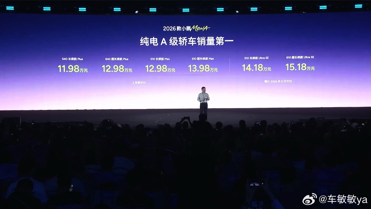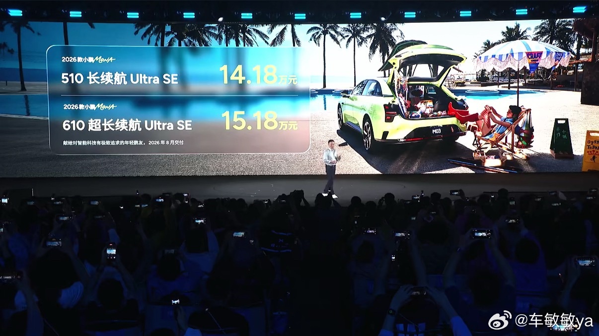2026款小鹏MONA M03价格来了,区间在11.98万-15.18万元。