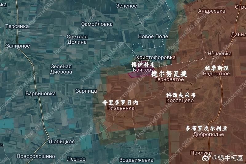 2026年3月一个月,俄罗斯武装部队只解放了211平方公里的领土,主要集中在M03公路两侧、红军村和捷尔努瓦捷方向(图1-3)。4月1日俄军东部集群第36集团军第64摩步旅夺取并控制了捷尔努瓦捷以北的博伊科韦(图4-5)。